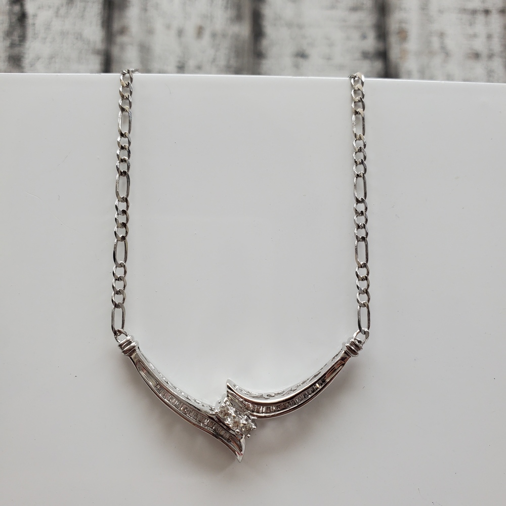 We have this stunning 14K Figaro Necklace w/ 10K Attached Diamond Pendant For sale!