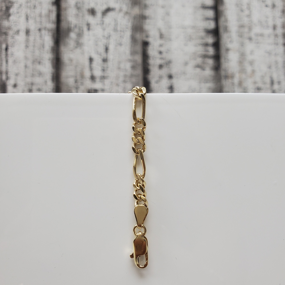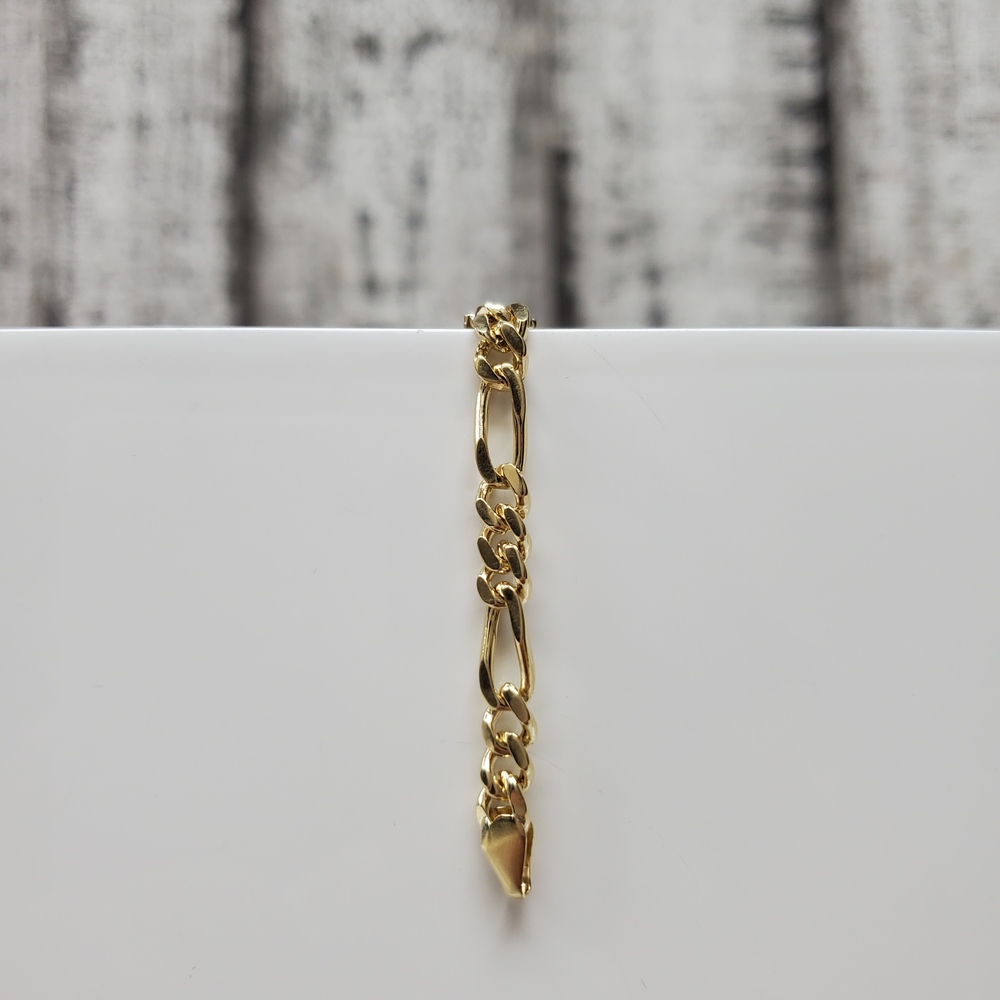 We have this stunning 14K Figaro Textured ID Style Bracelet for sale!