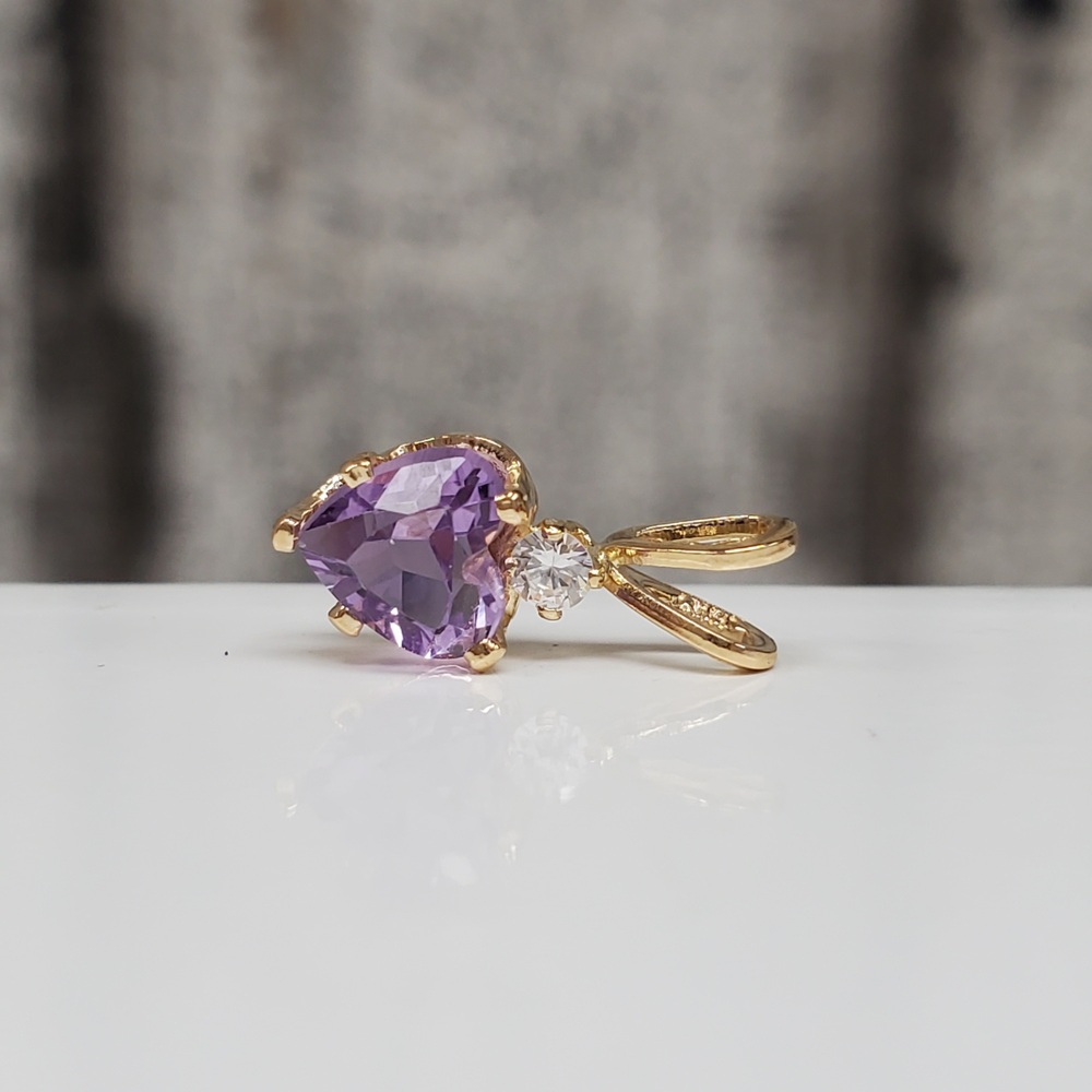 We have this stunning 14K Heart Amethyst + CZ Pendant For sale!