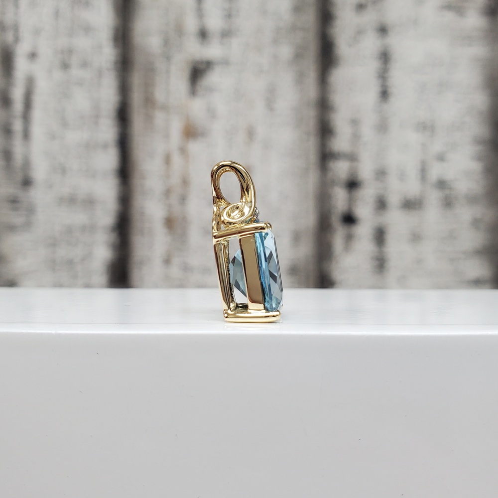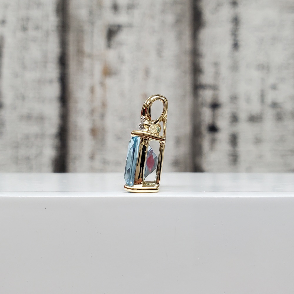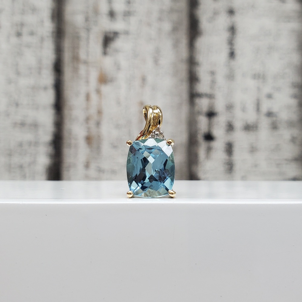 We have this stunning 14K Large Blue Topaz Diamond Pendant for sale!