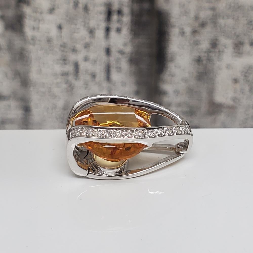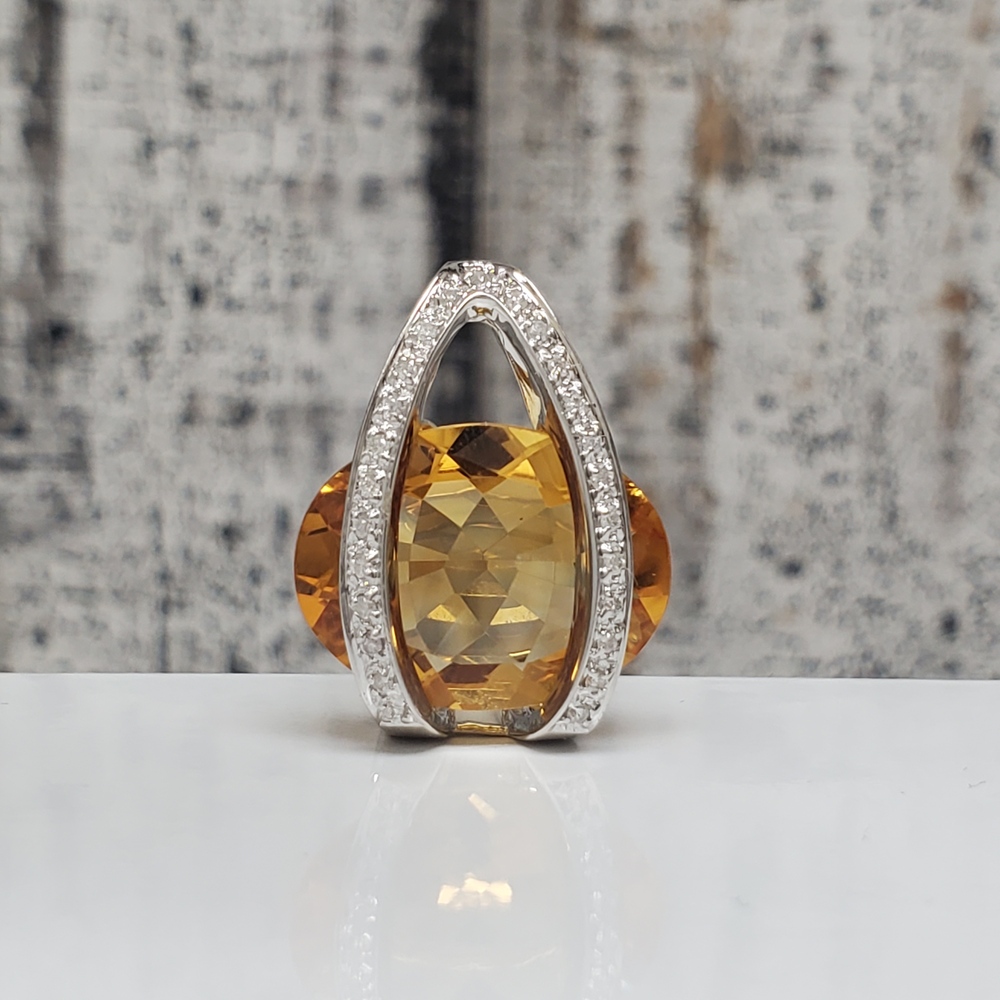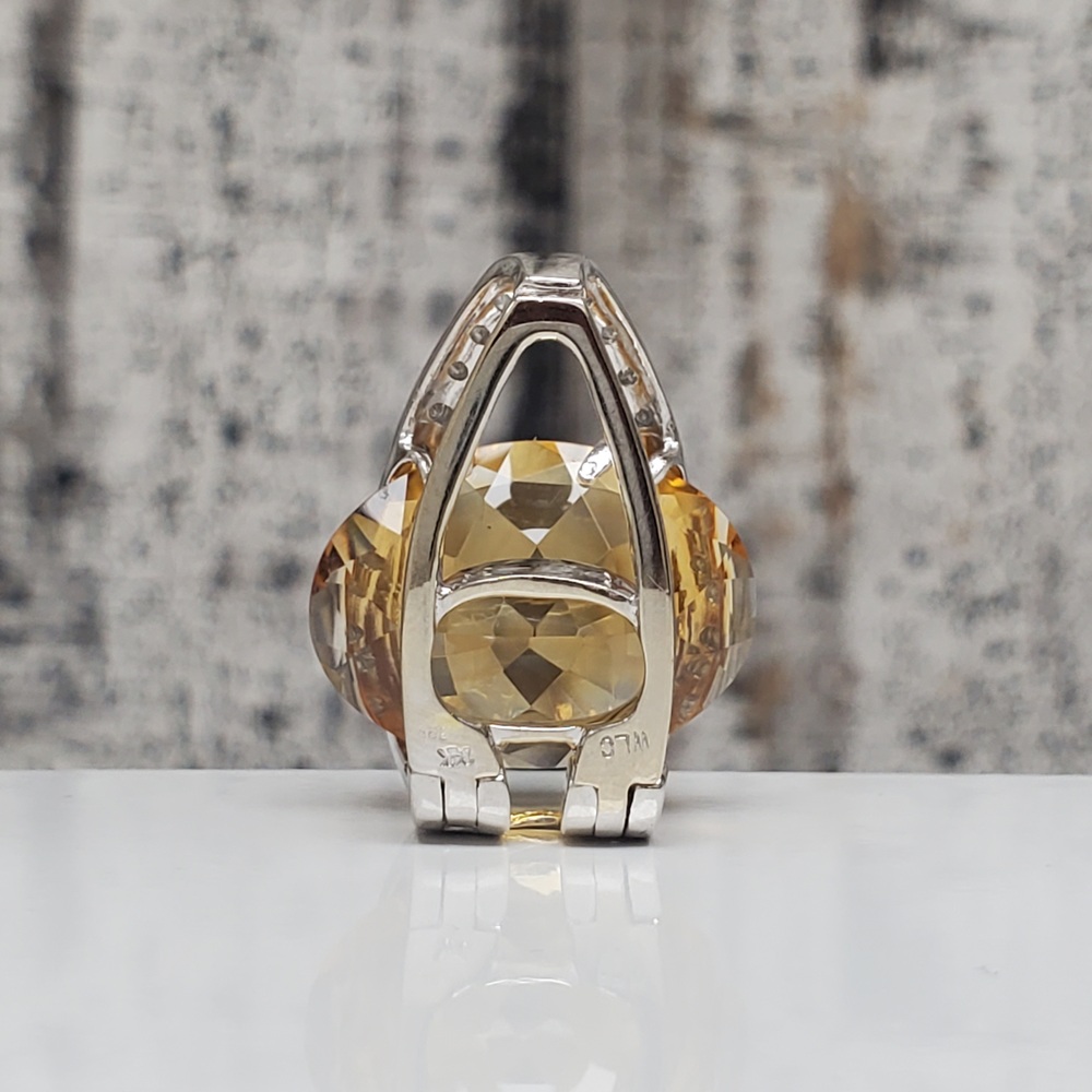 We have this stunning 14K Large Oval Citrine + Diamond Pendant For sale!