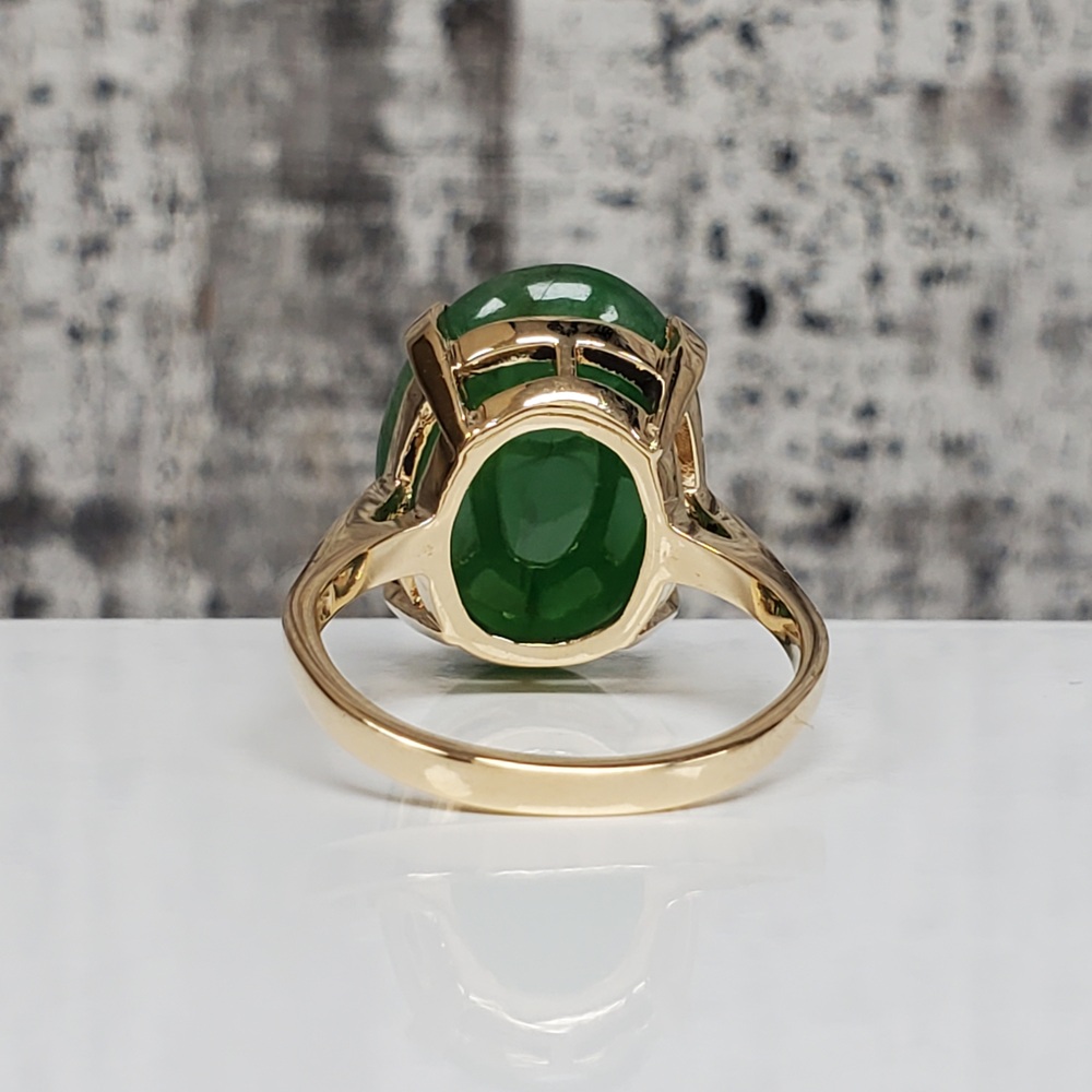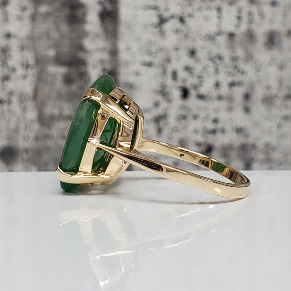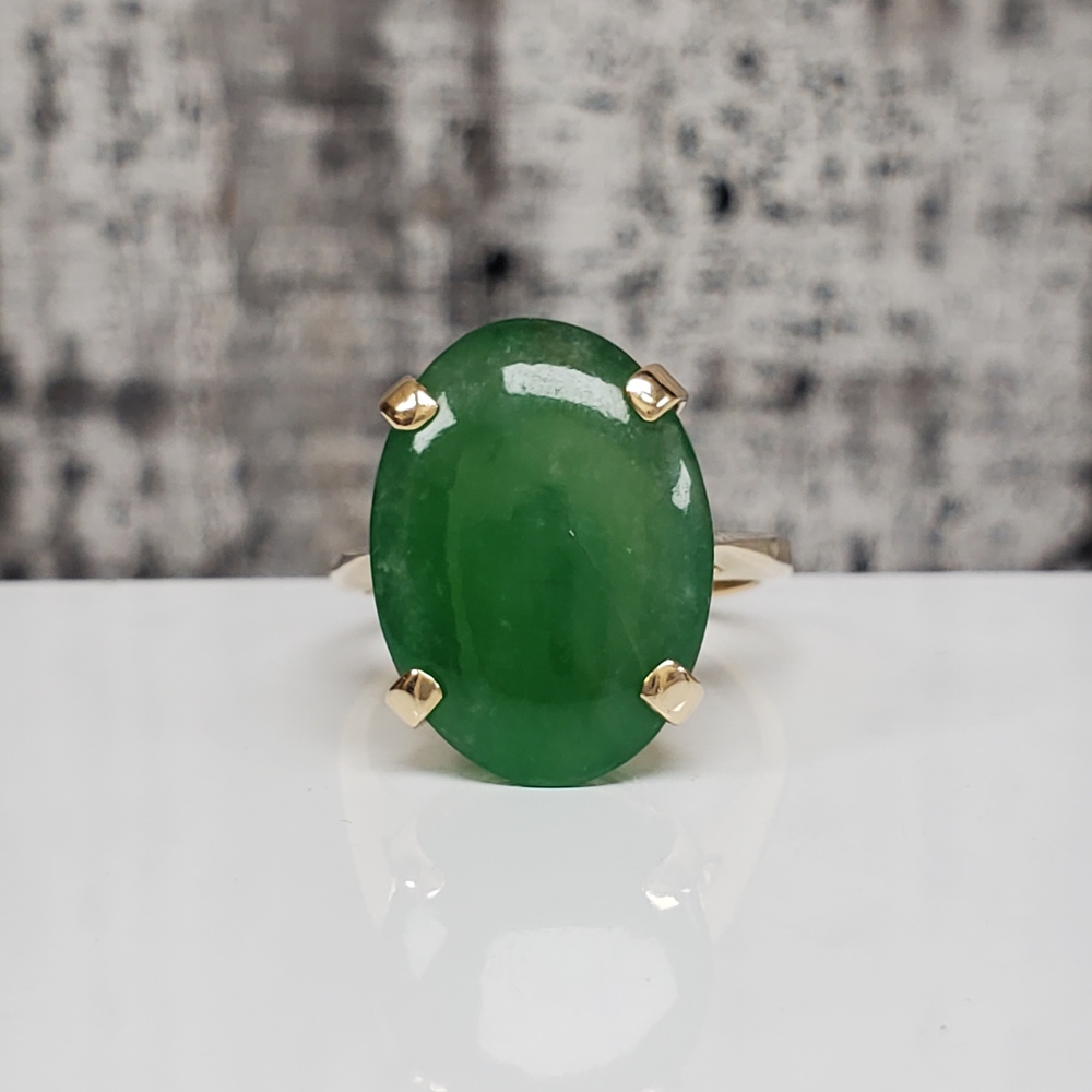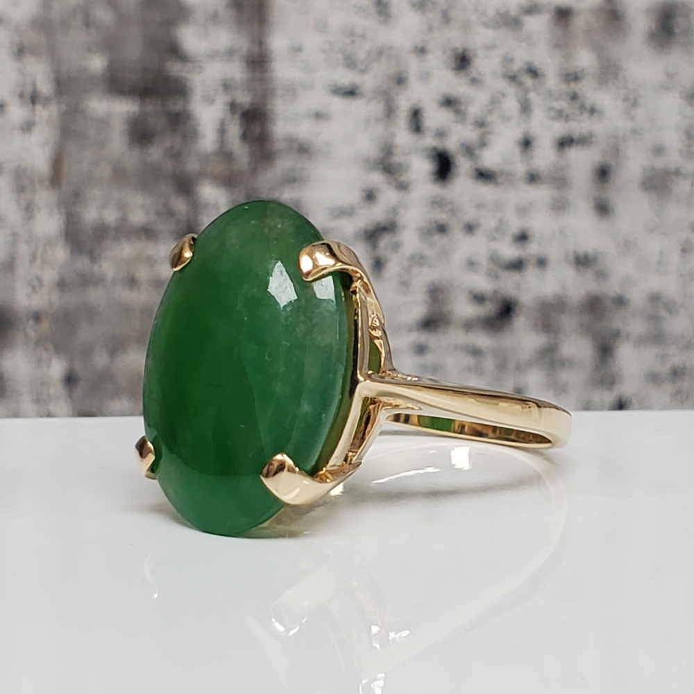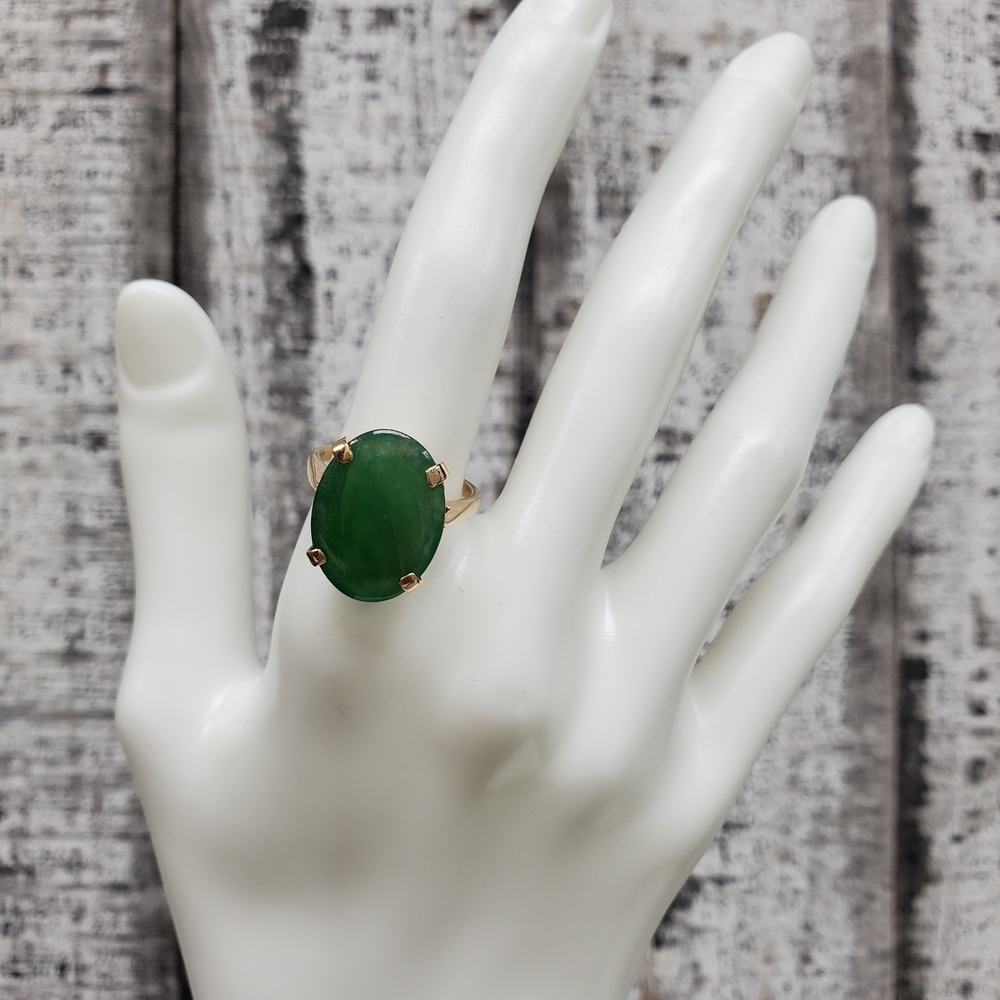 We have this stunning 14K Large Oval Jade Ring For sale!