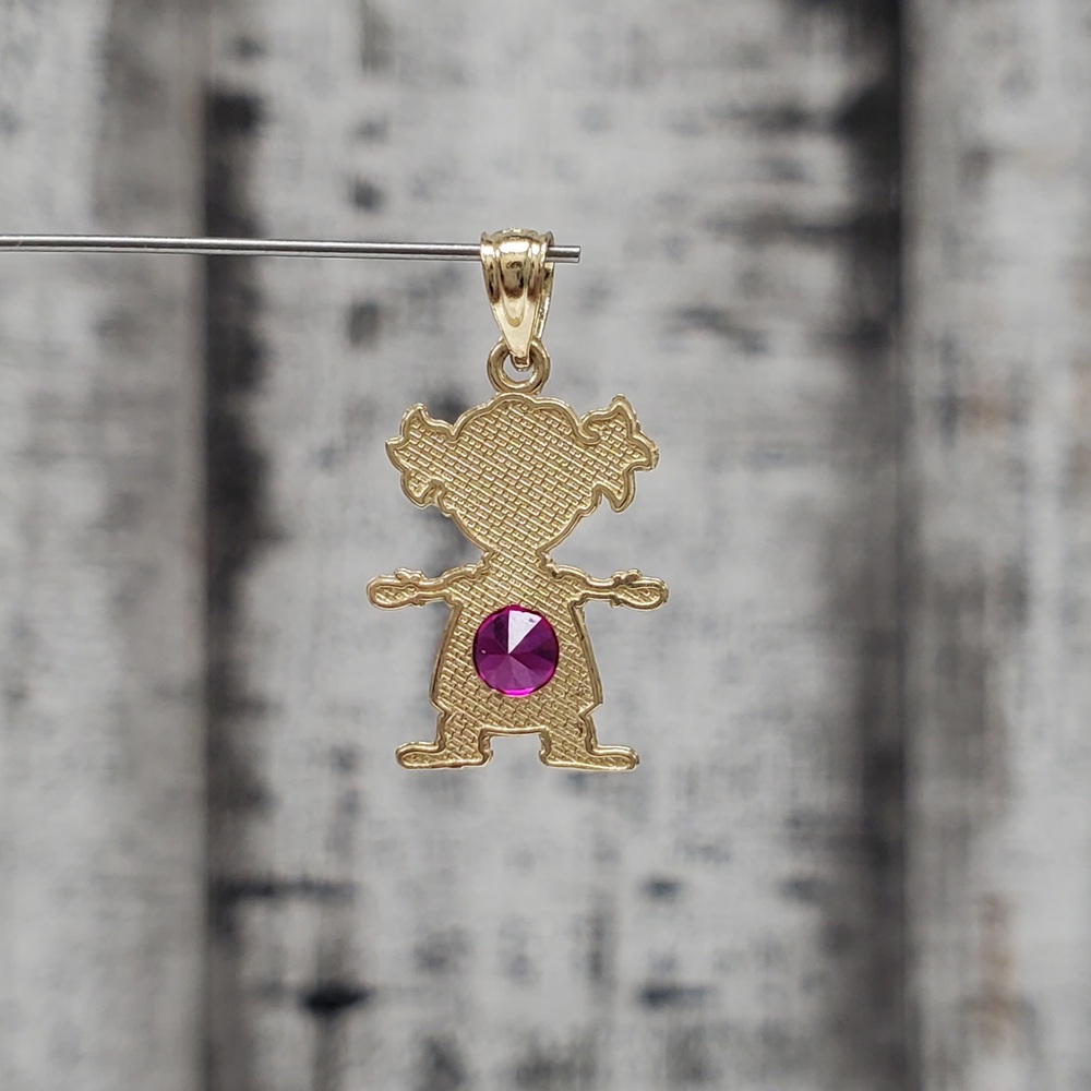 We have this stunning 14K Little Girl Pendant w/ Synth Ruby Pendant For sale!