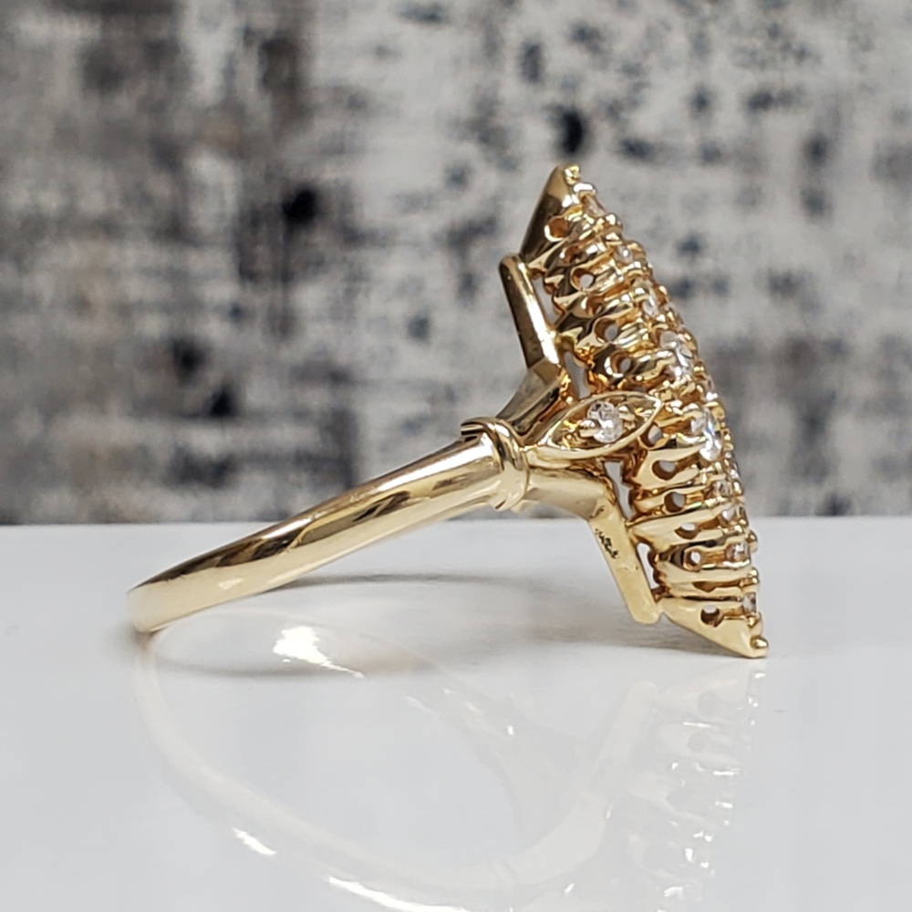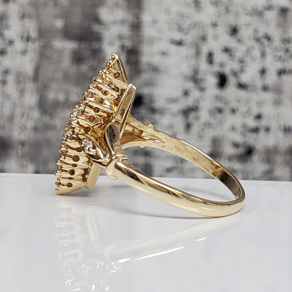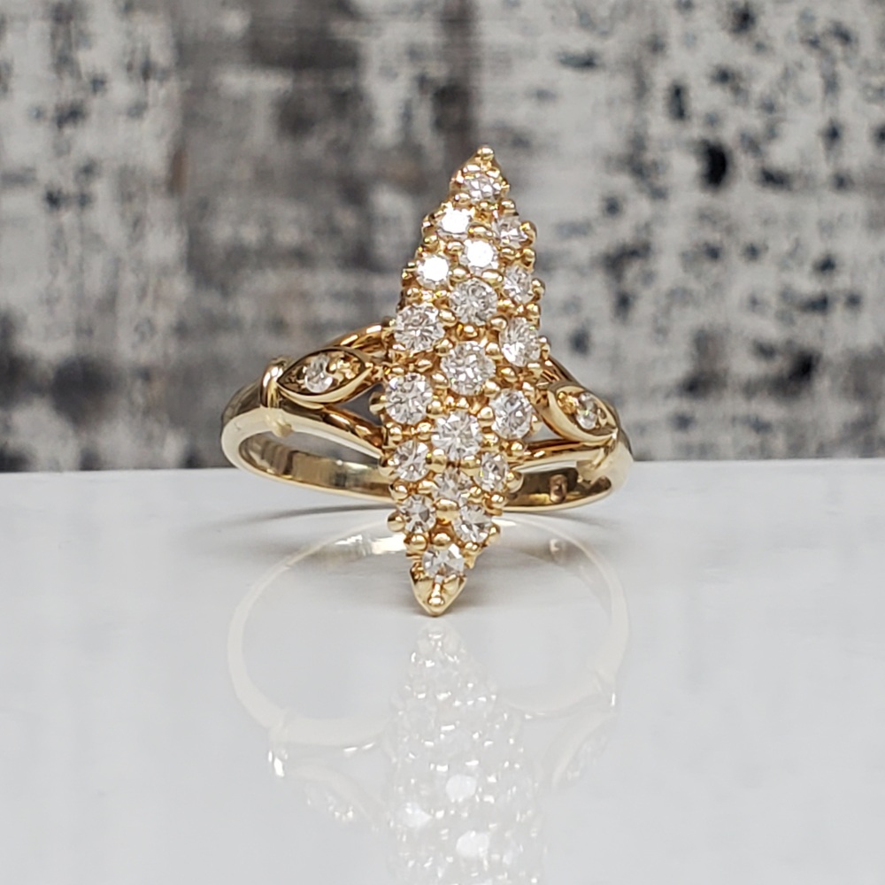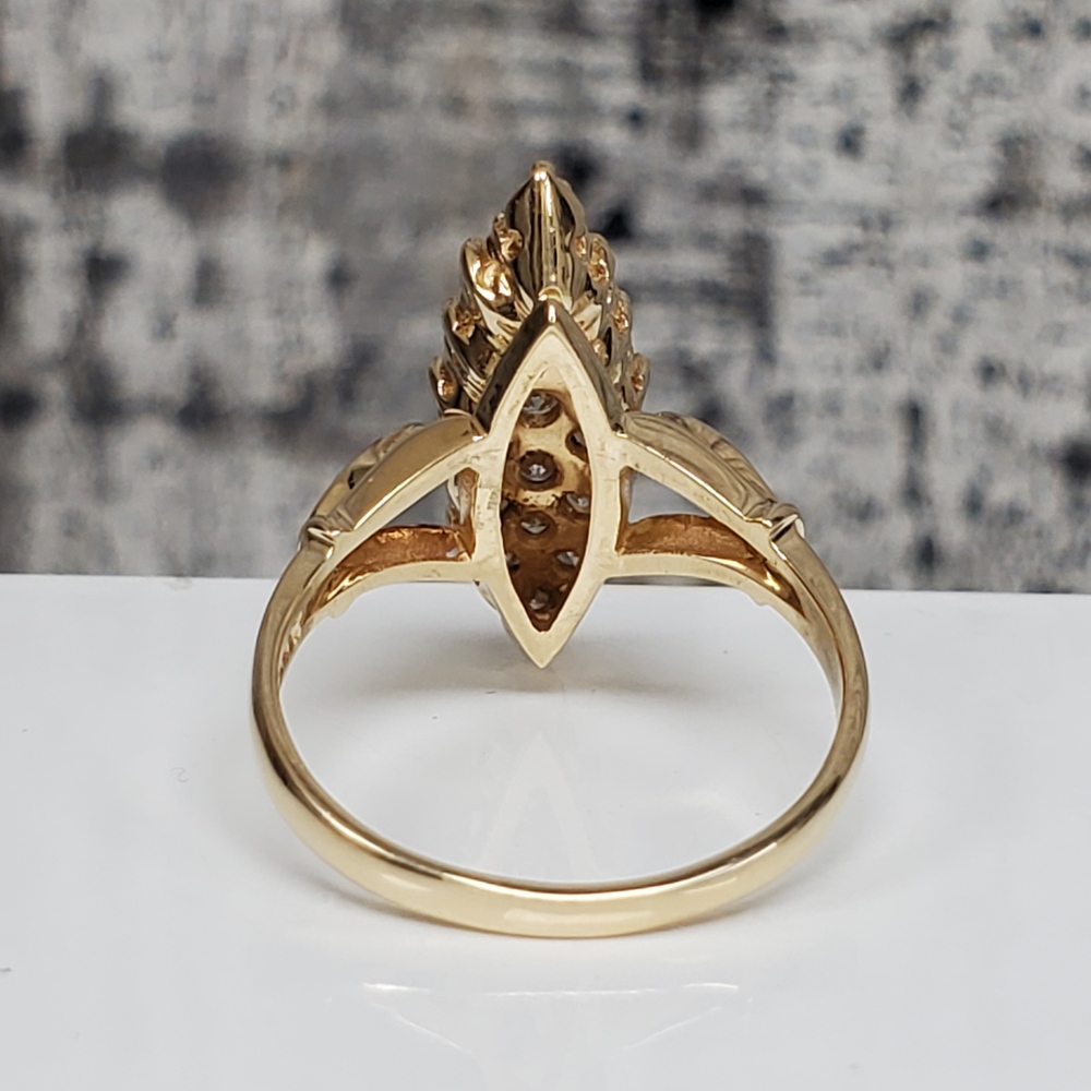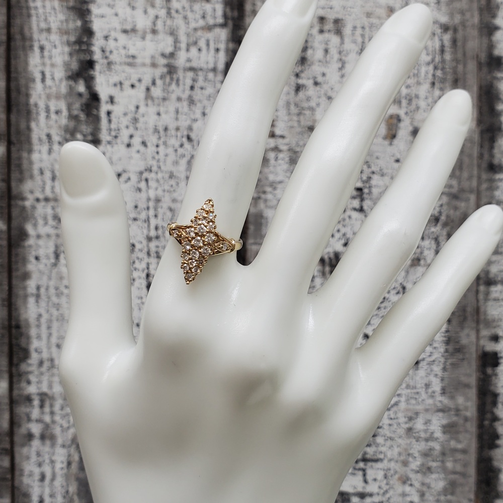 We have this stunning 14K Marquise Shaped Cluster Ring For sale!