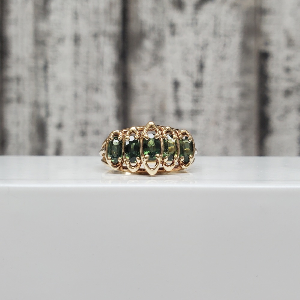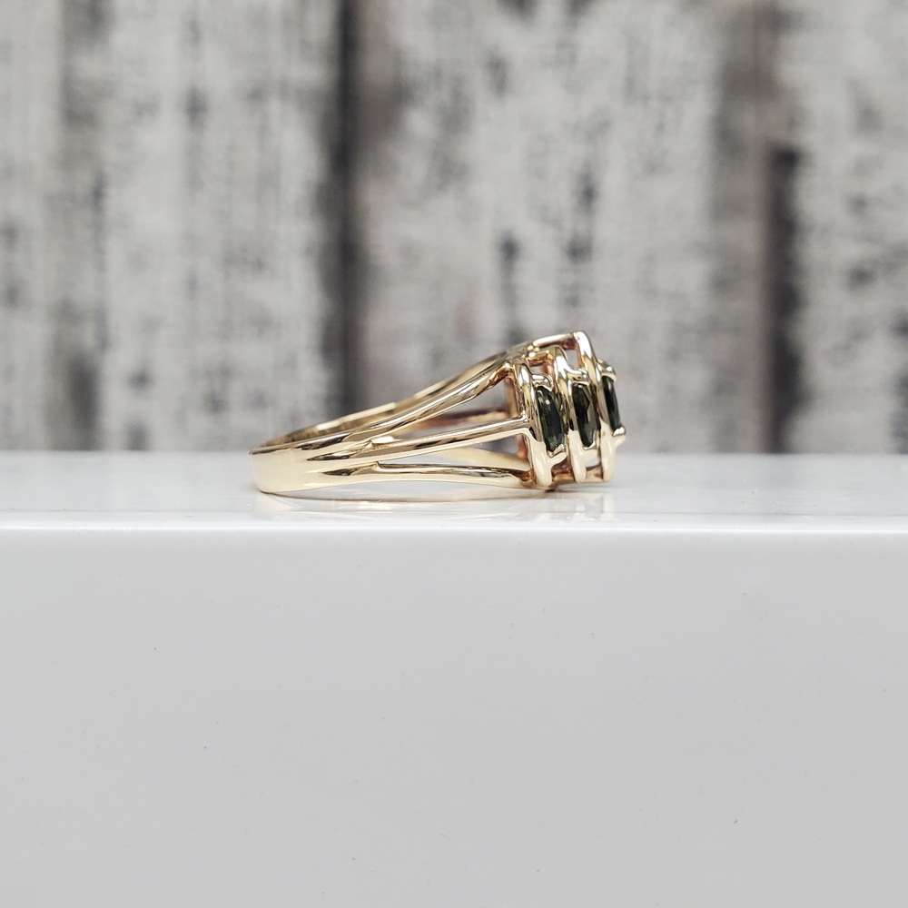 We have this stunning 14K Multi Marquise Shaped Green Stone Ring for sale!