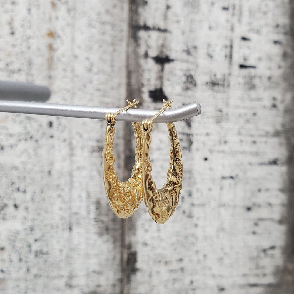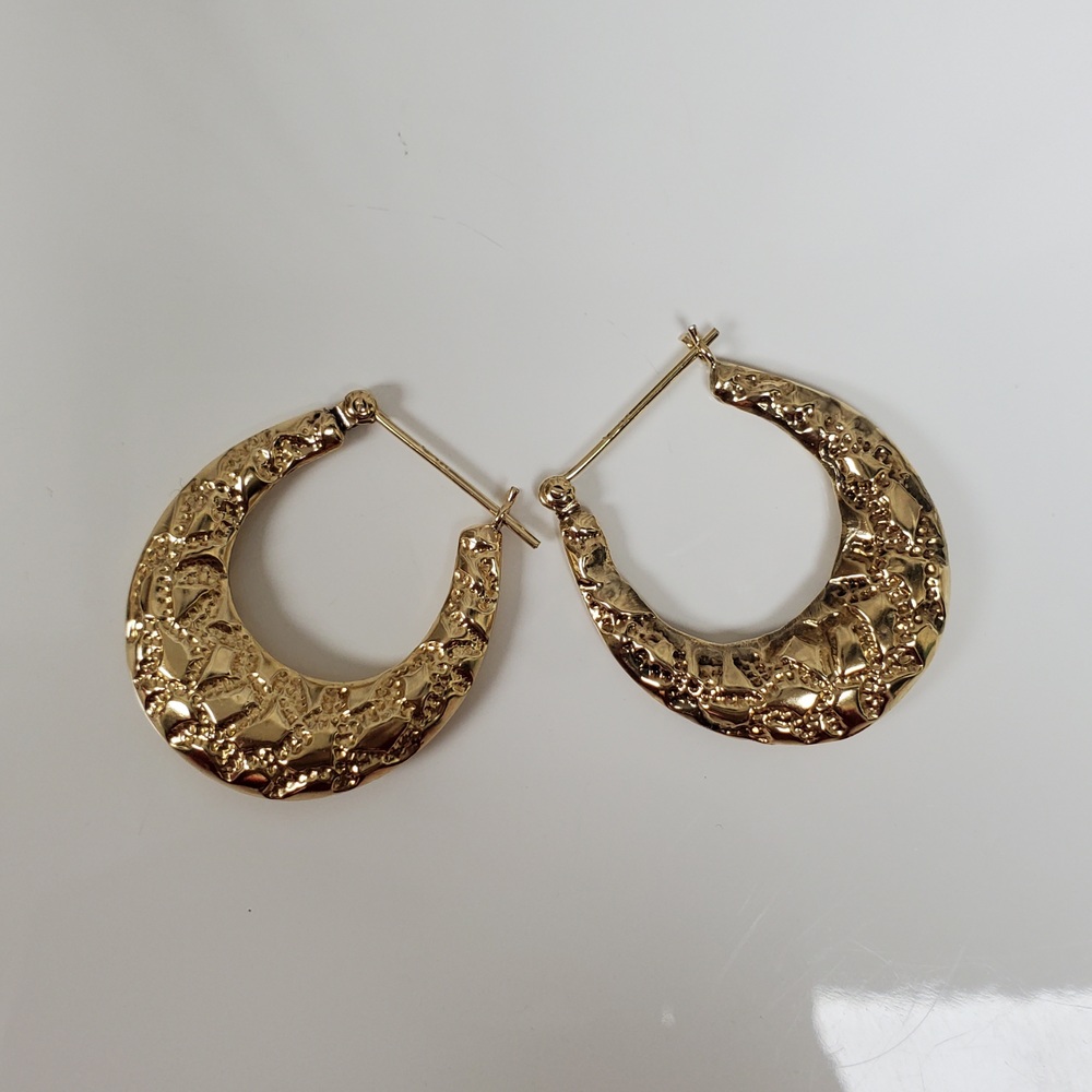 We have this stunning 14K Nugget Style Hoop Earrings for sale!
