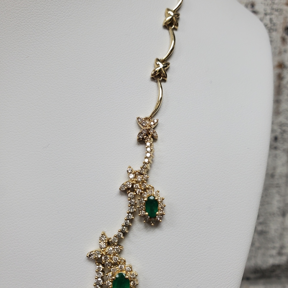 We have this stunning 14K Oval Emeralds Butterfly Design + Diamond Necklace For sale!