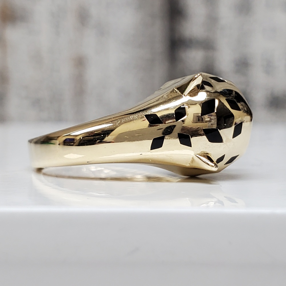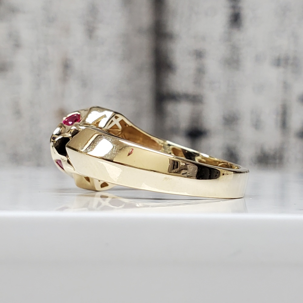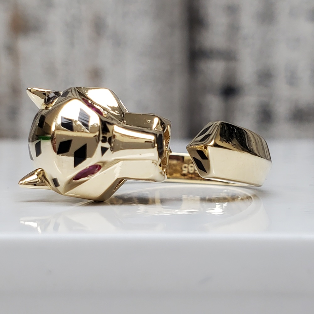 We have this stunning 14K Panther Ring w/ Black Inlay + Synth Ruby Eyes for sale!