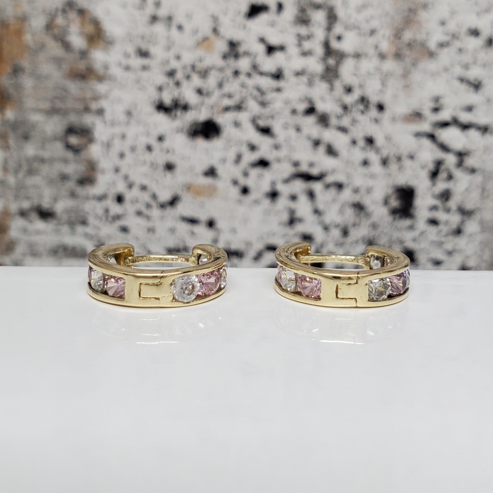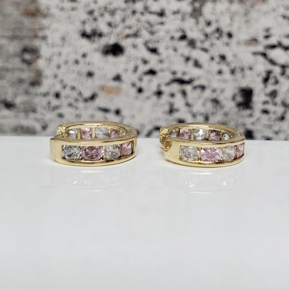 We have this stunning 14K Pink + Clear CZ Hoop Earrings For sale!