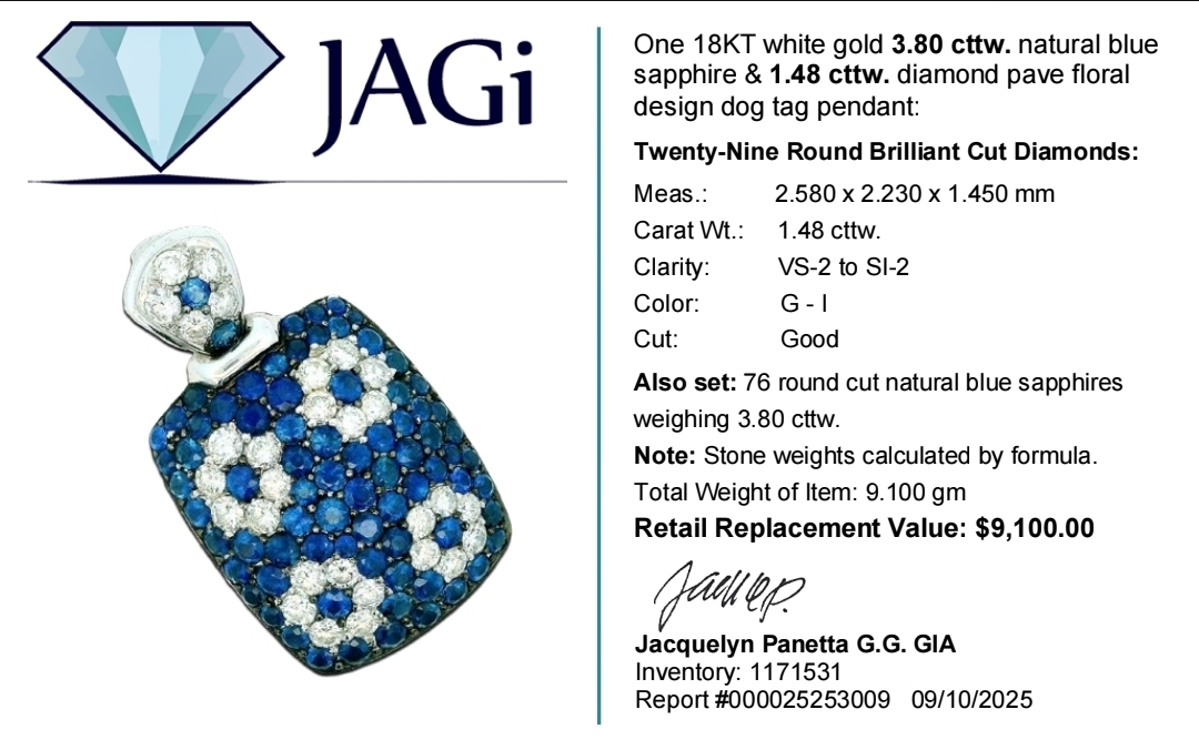Notes: JAGI LAB #:000025253009 - Retail Replacement Value: $9,100 Pendant