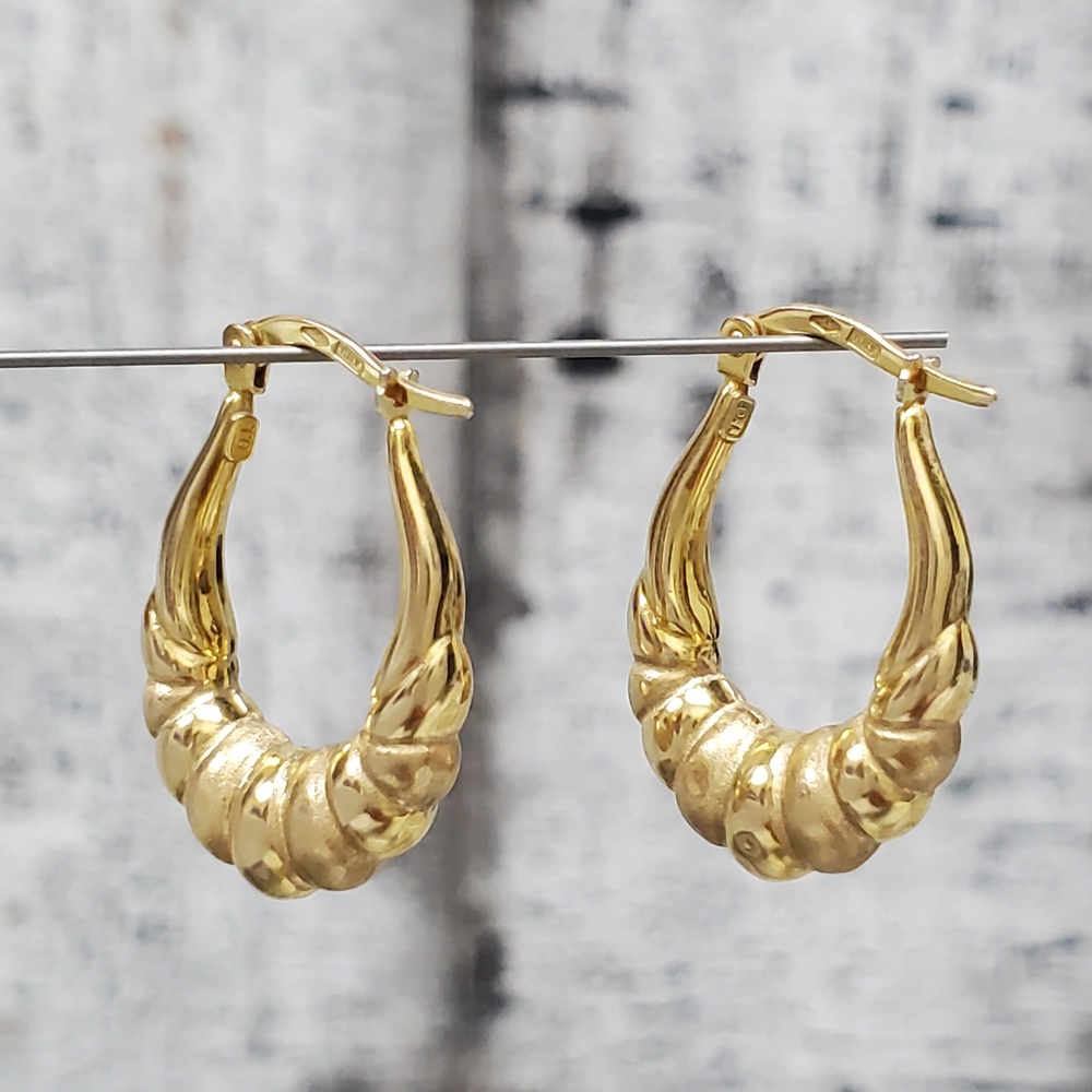 We have this stunning 14K Shell Hoop Earrings for sale!
