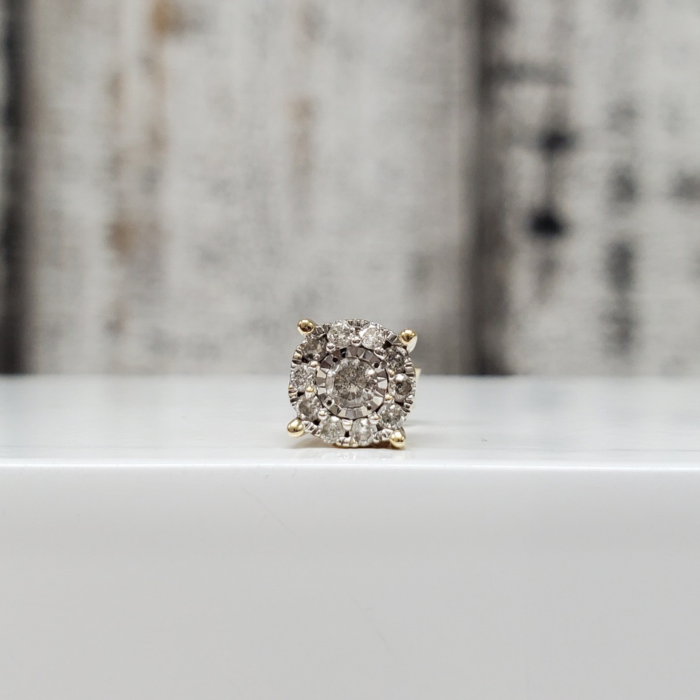 We have this stunning 14K SINGLE Diamond Cluster Stud Earrings w/ Friction Backs For sale!