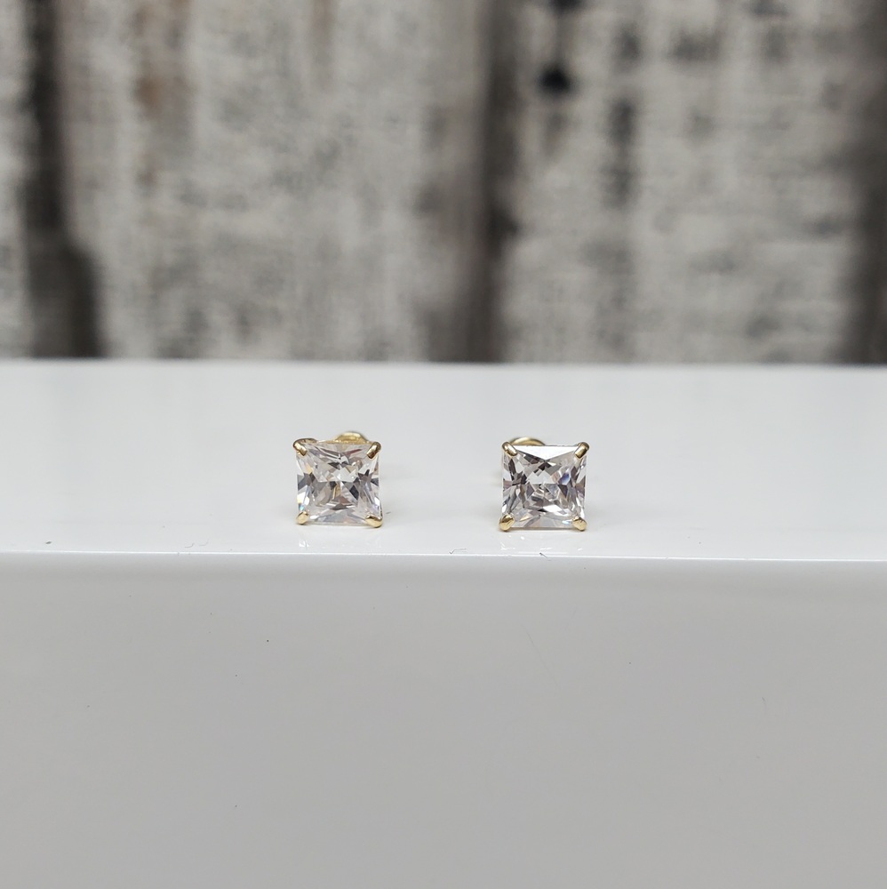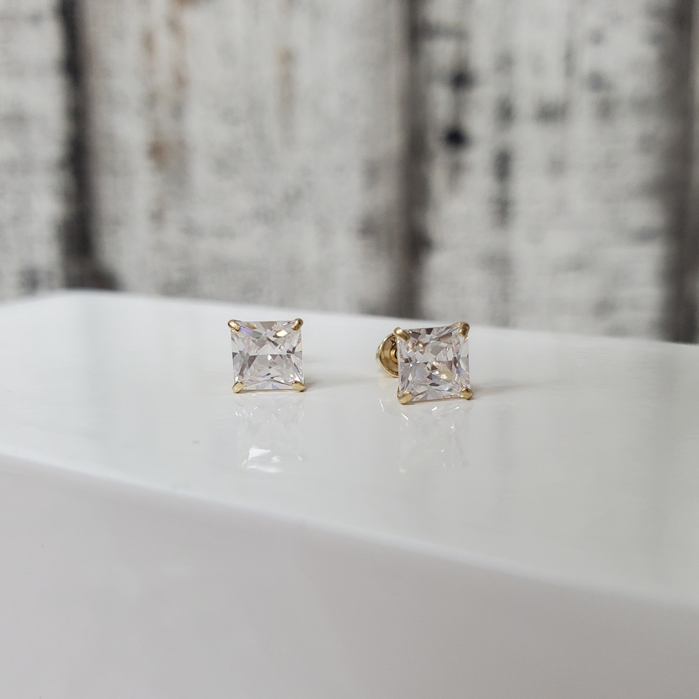 We have this stunning 14K Square CZ Stud Earrings w/ Baby Screwbacks for sale!