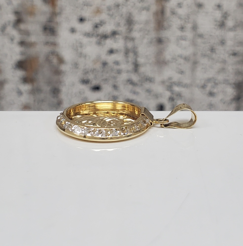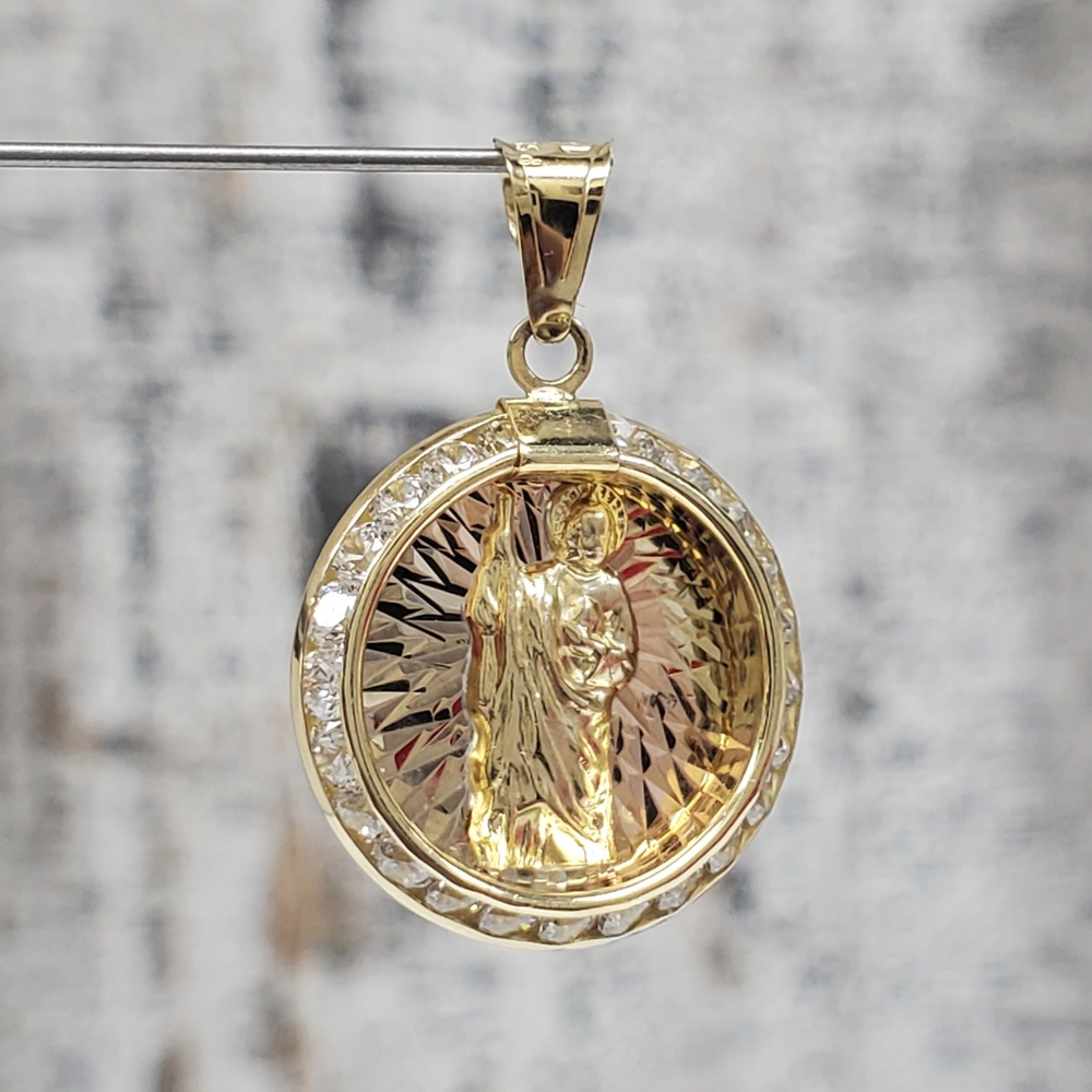 We have this stunning 14K St. Jude / San Judas Religious Circular CZ Pendant For sale!
