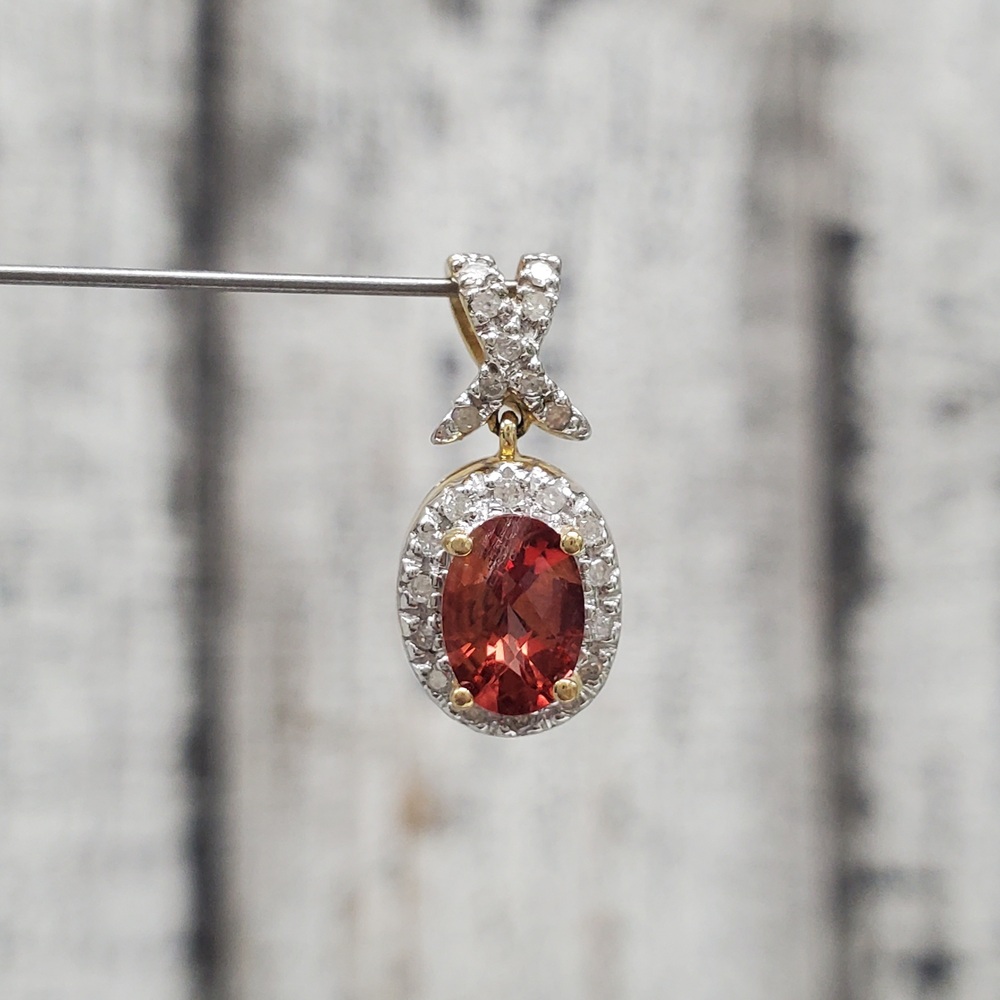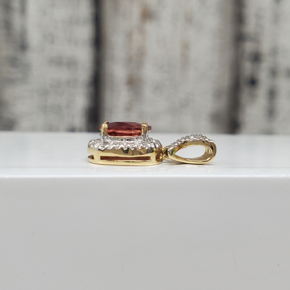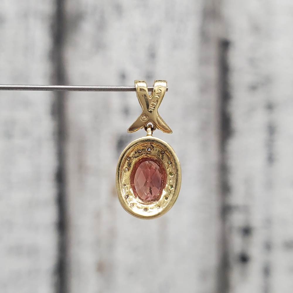 Dept:J5 Gold 14kt Colored Stone 1.00dwt 1d 14K YG 7.1x5mm Sunstone w/ est. .12ctw SC Dias Pendant 17.5mm Tall x 8.2mm Wide 1218450 Pendant