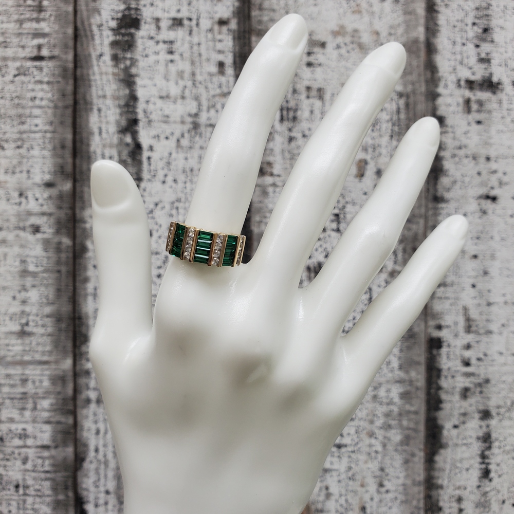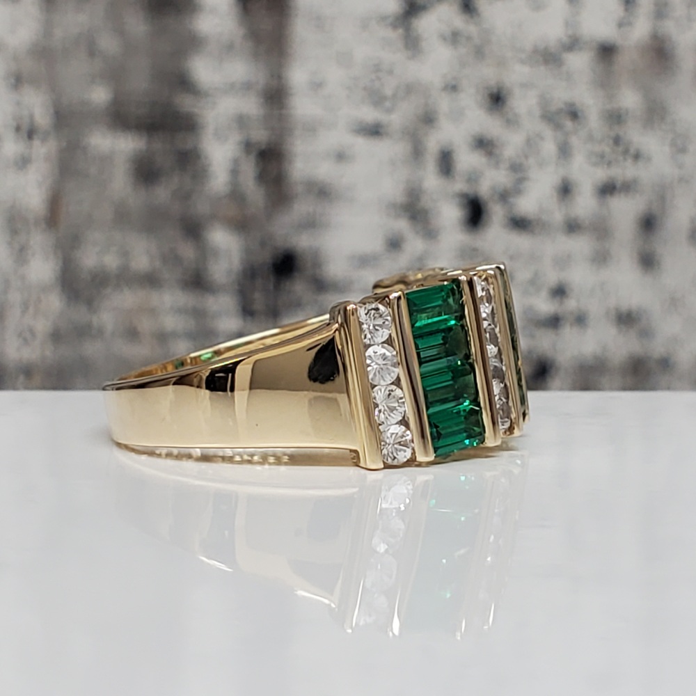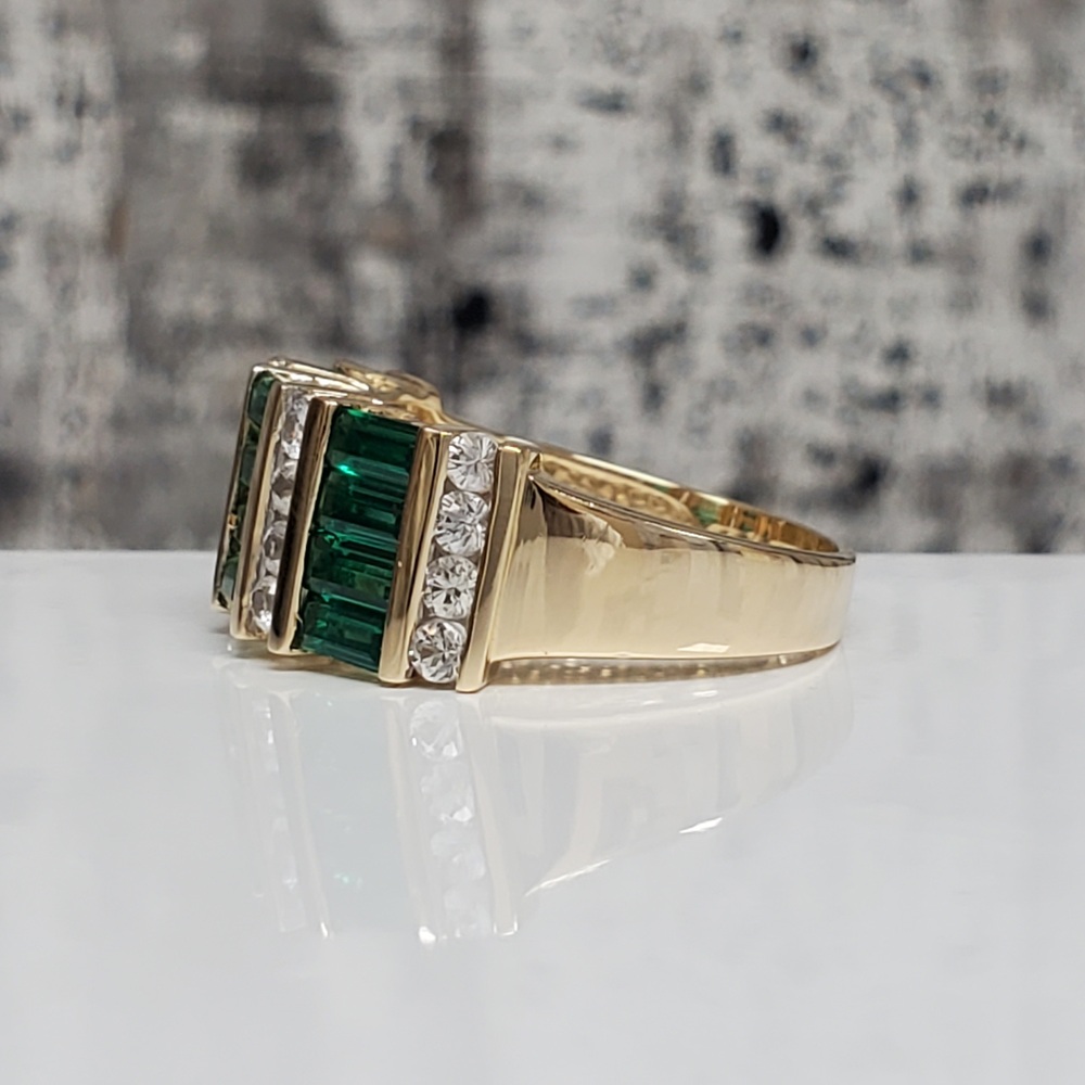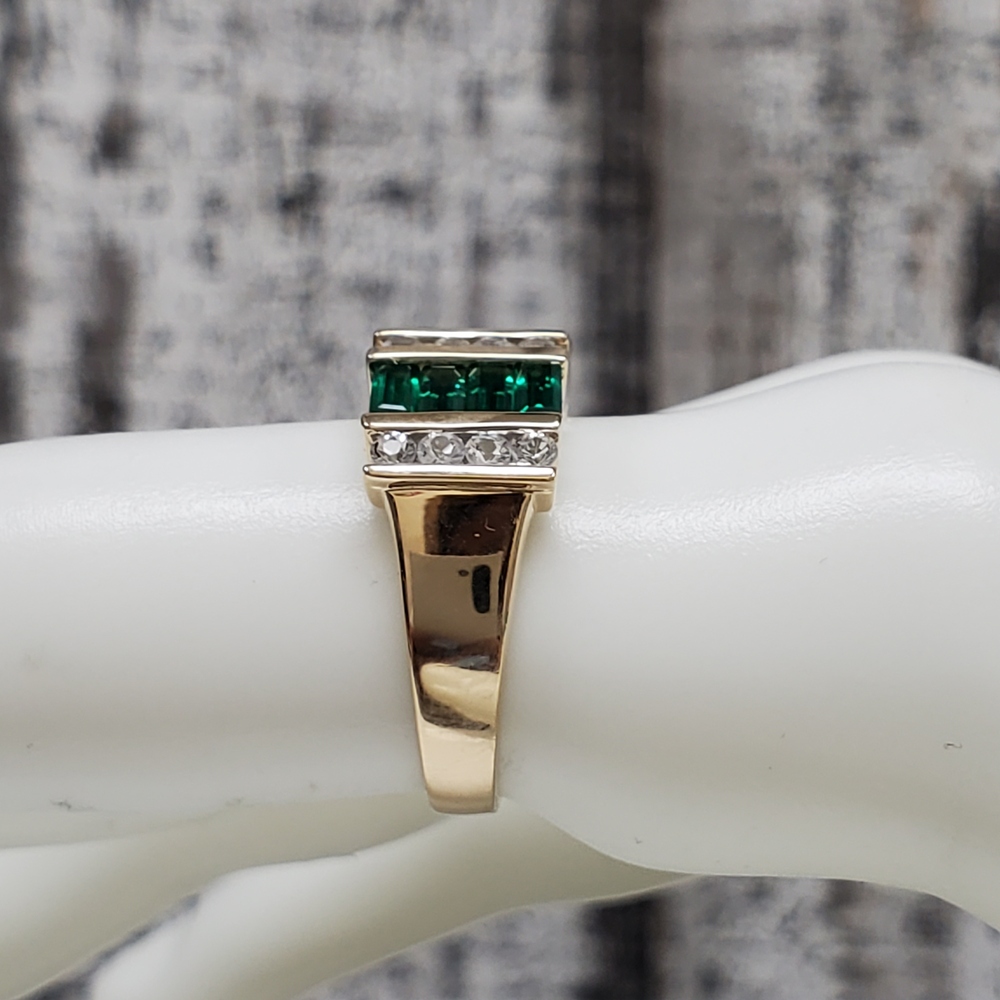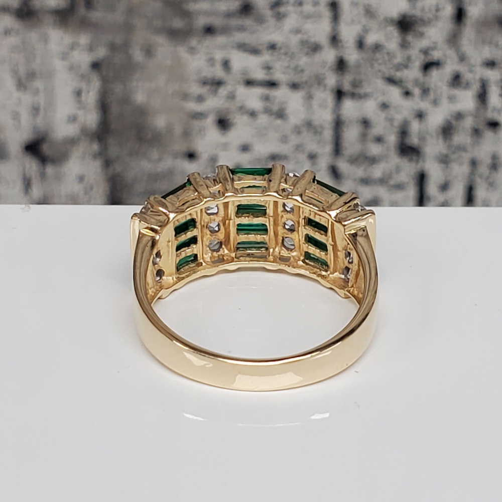 We have this stunning 14K Synth Emeralds + White Sapphire Ring For sale!