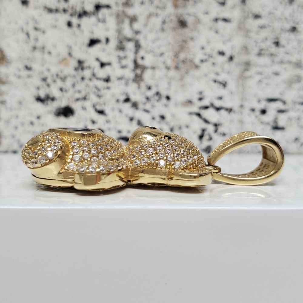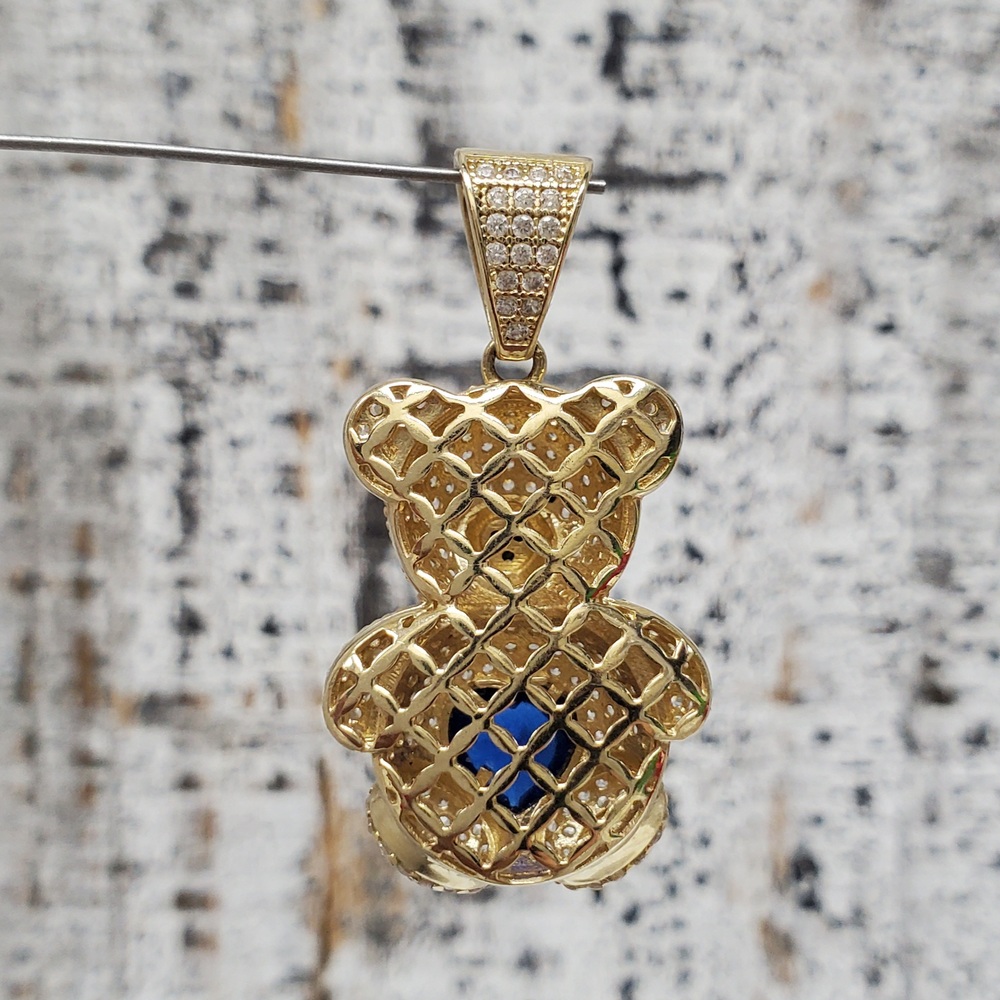 We have this stunning 14K Teddy Bear CZ + Synth Sapphire Heart Pendant For sale!