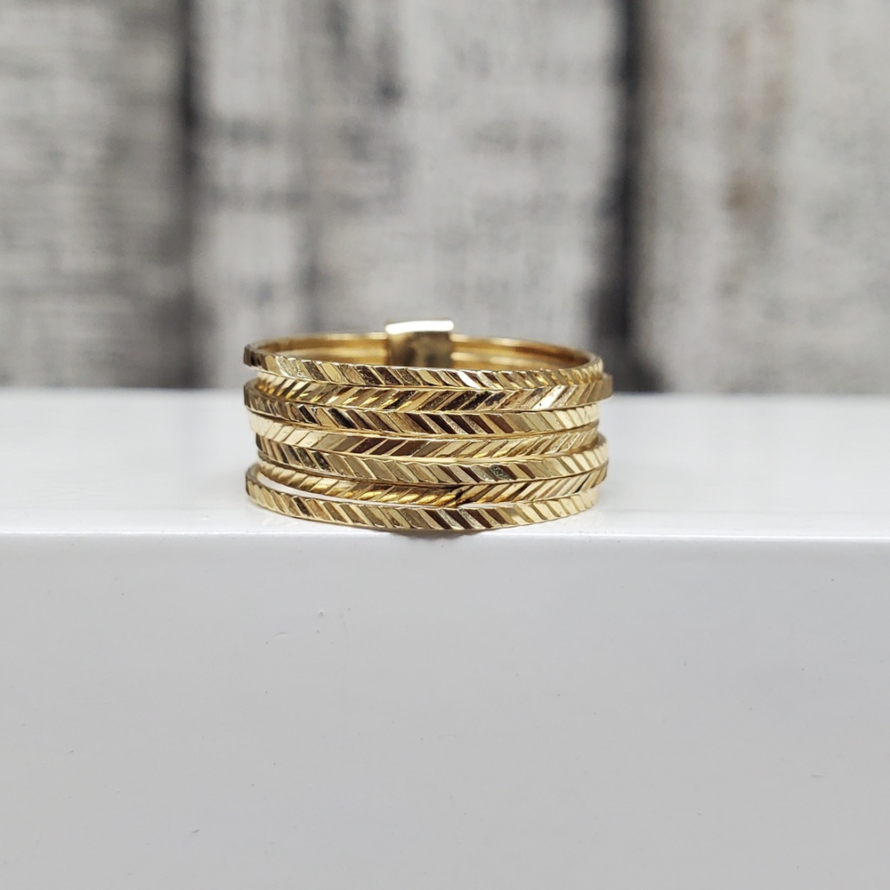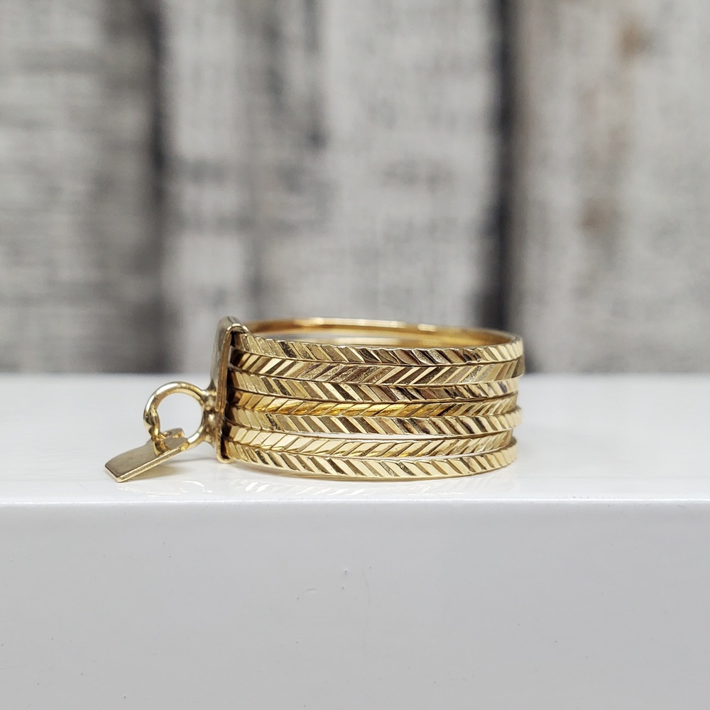 Dept:J1 Gold 14kt sz5.5 1.7d 14K YG Textured Semenario Ring w/ Heart Dangle 1211389 Ring