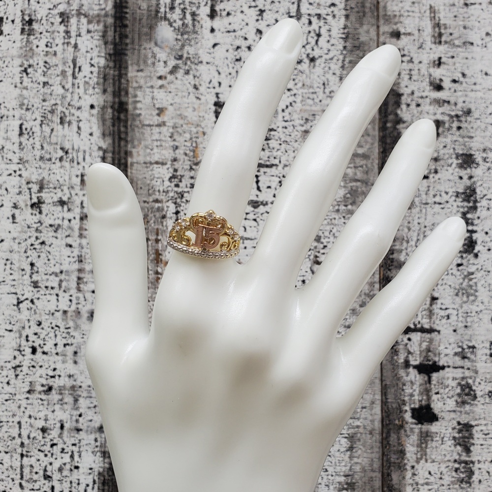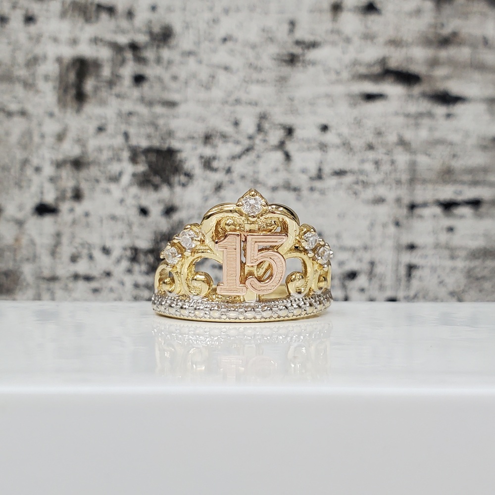 We have this stunning 14K TriColor 15 Anos ?" CZ Crown Ring for sale!