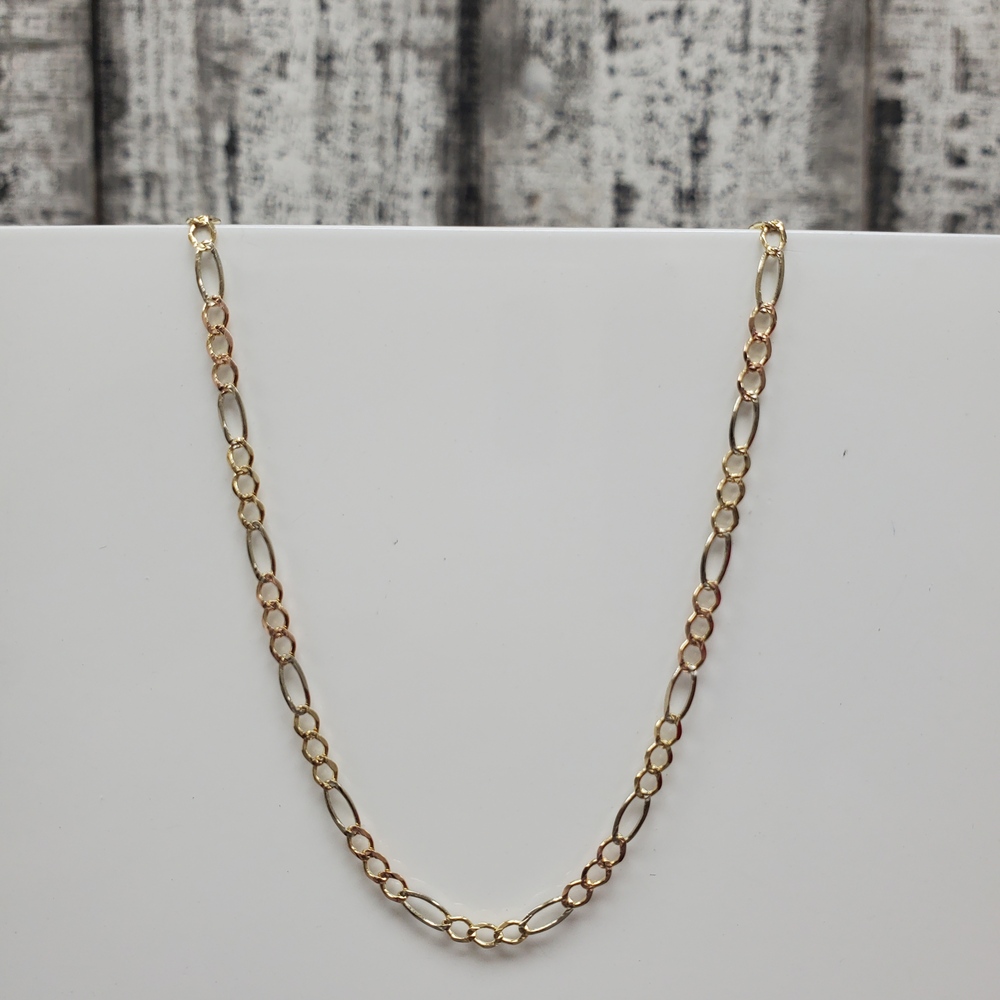 We have this stunning 14K TriColor Diamond Cut Figaro Link Necklace for sale!