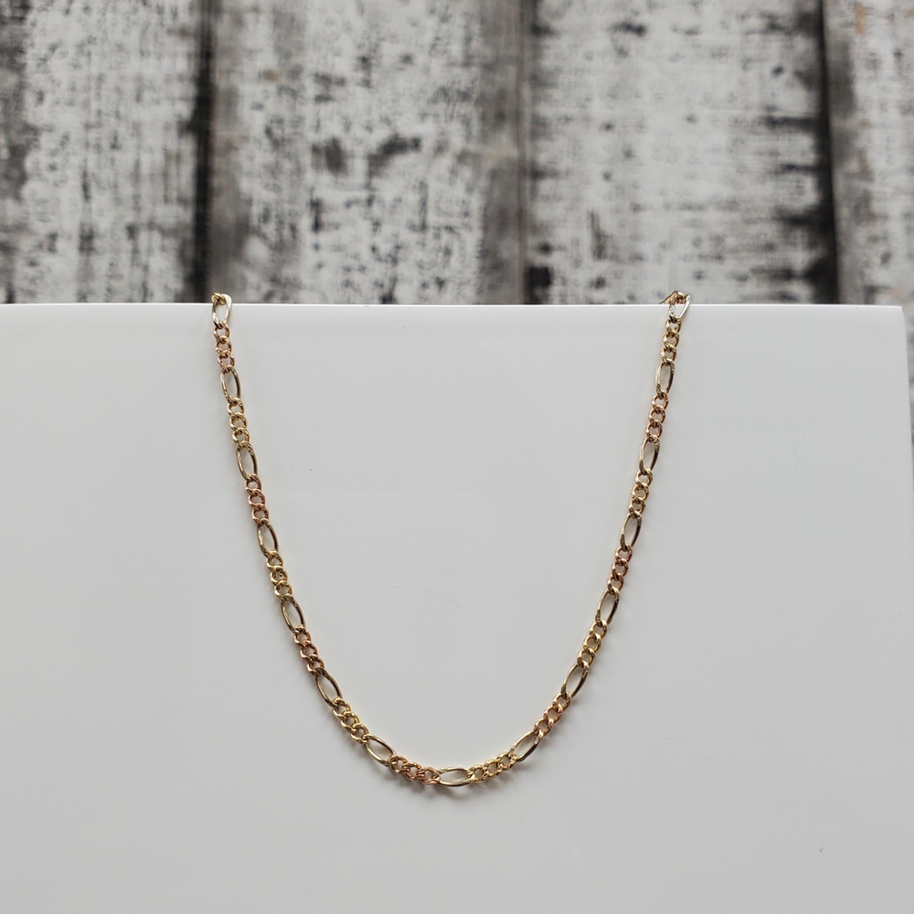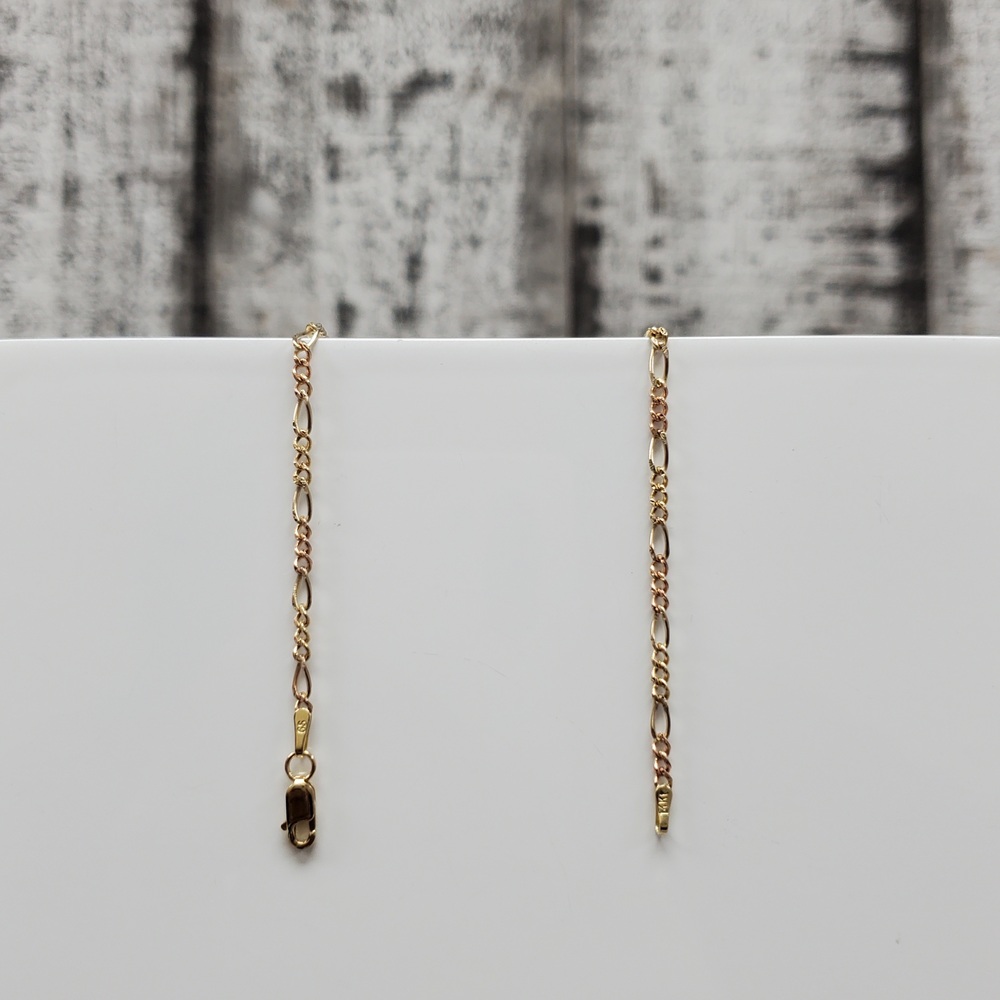 We have this stunning 14K TriColor Diamond Cut Figaro Link Necklace For sale!