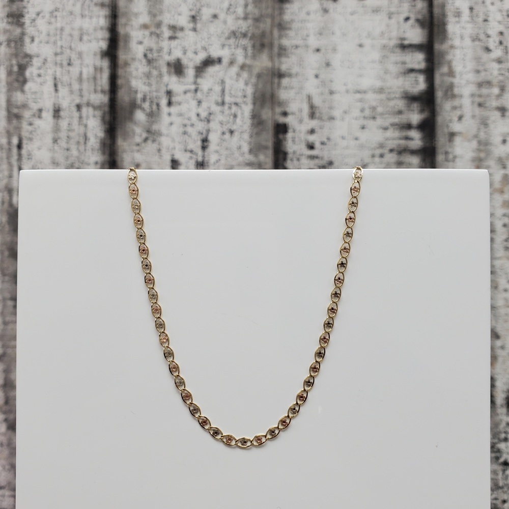We have this stunning 14K TriColor Diamond Cut Valentino Style Link Necklace For sale!