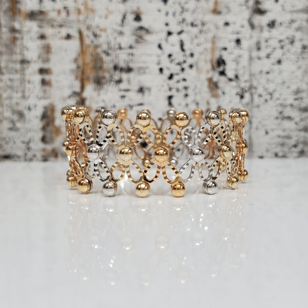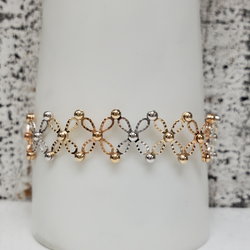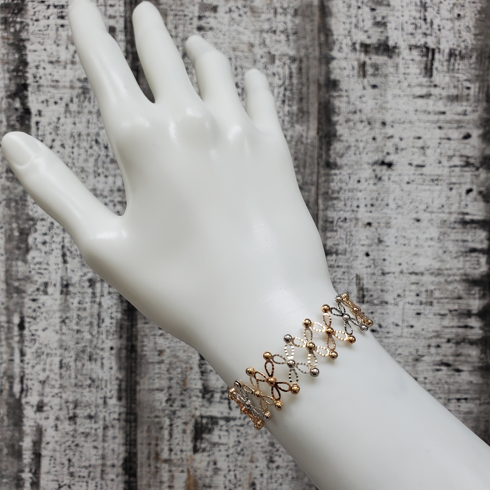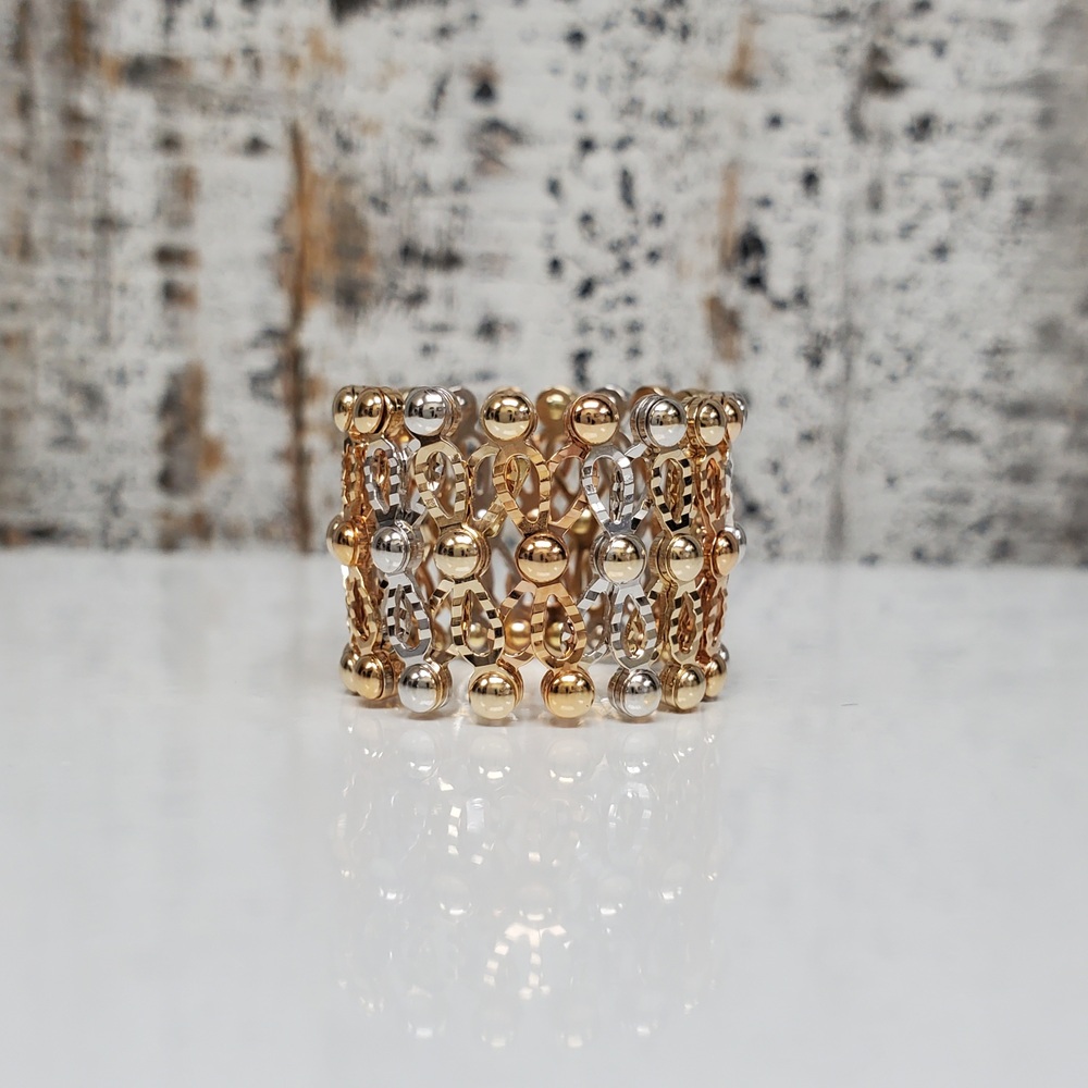 We have this stunning 14K TriColor Fancy Adjustable Ring + Bracelet For sale!
