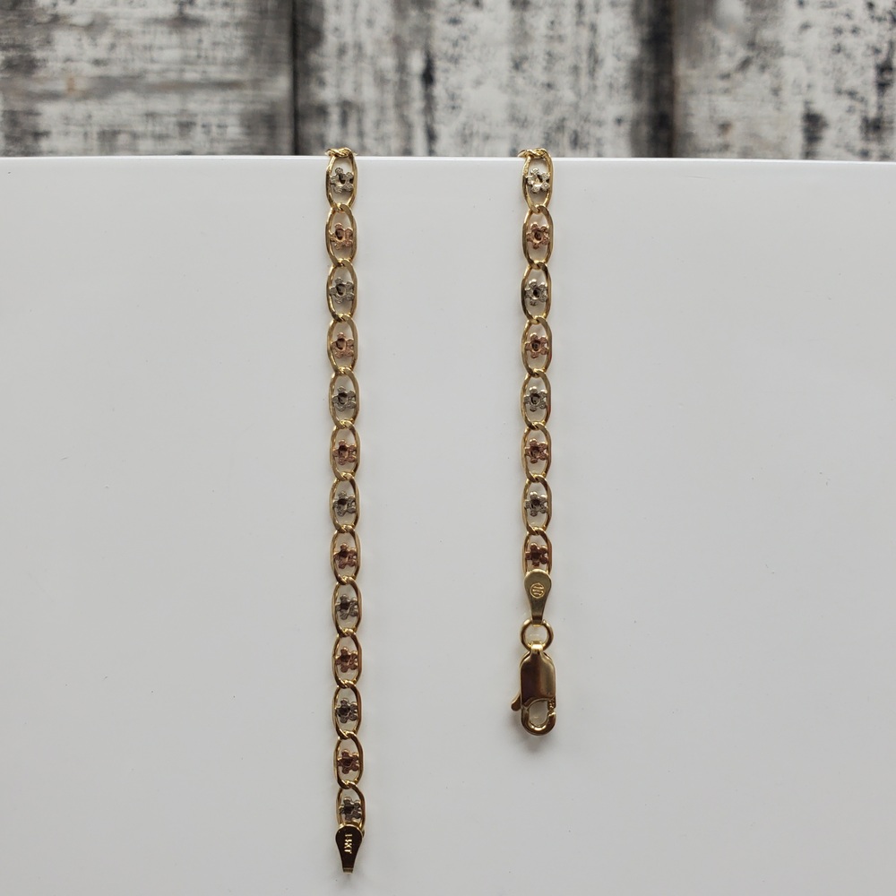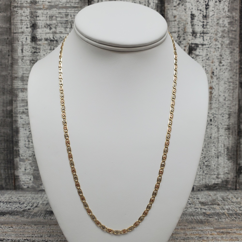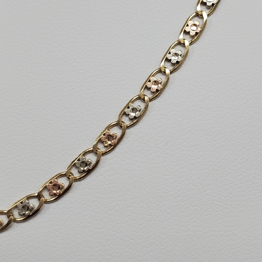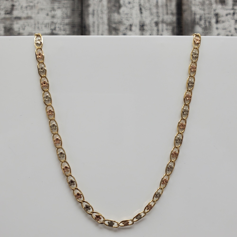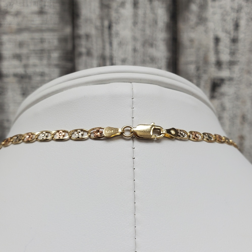 We have this stunning 14K TriColor Flower Design Valentino Link Necklace For sale!