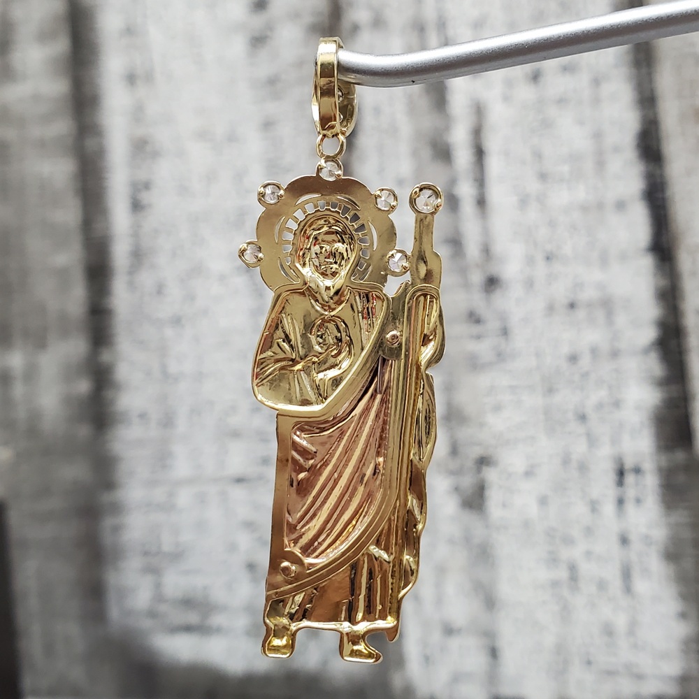 We have this stunning 14K TriColor St. Jude / San Judas Religious CZ Pendant for sale!