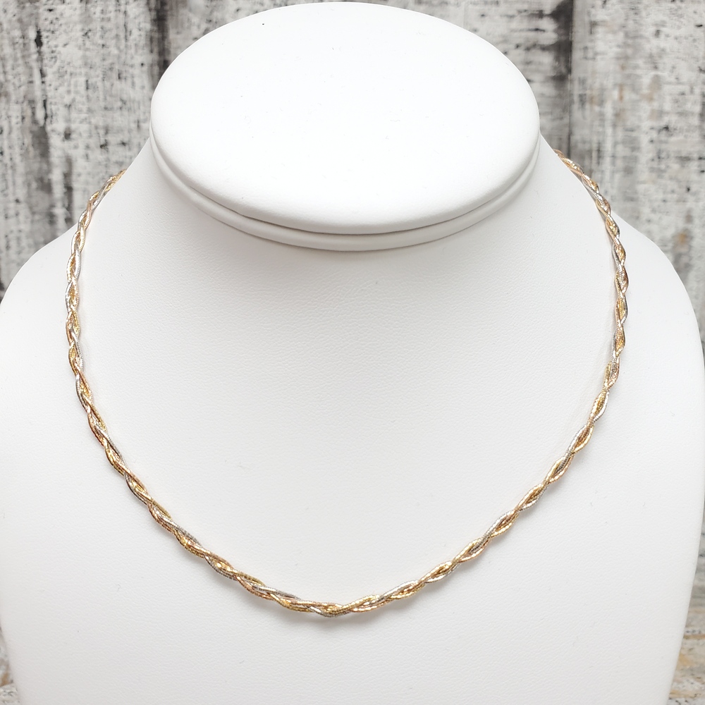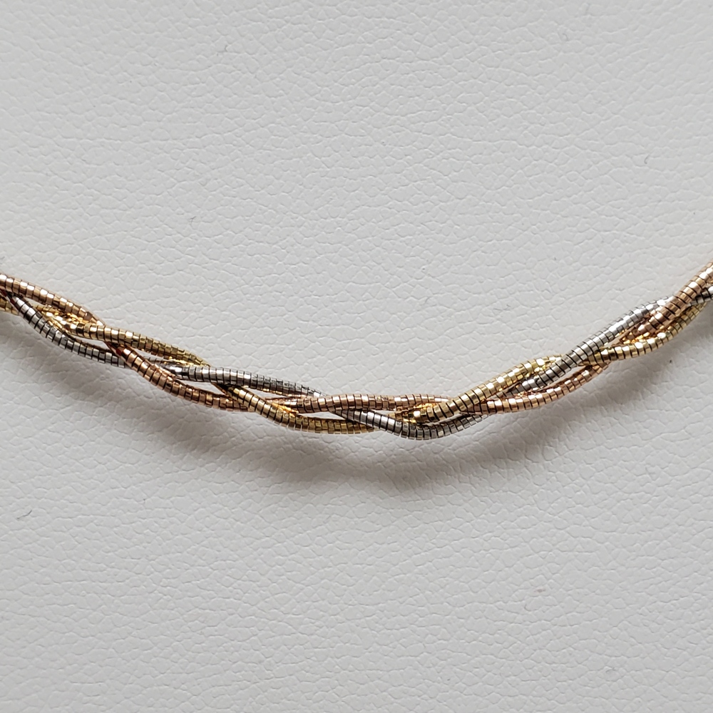 We have this stunning 14K TriColor Twisty 3 Strand Design Choker Necklace for sale!