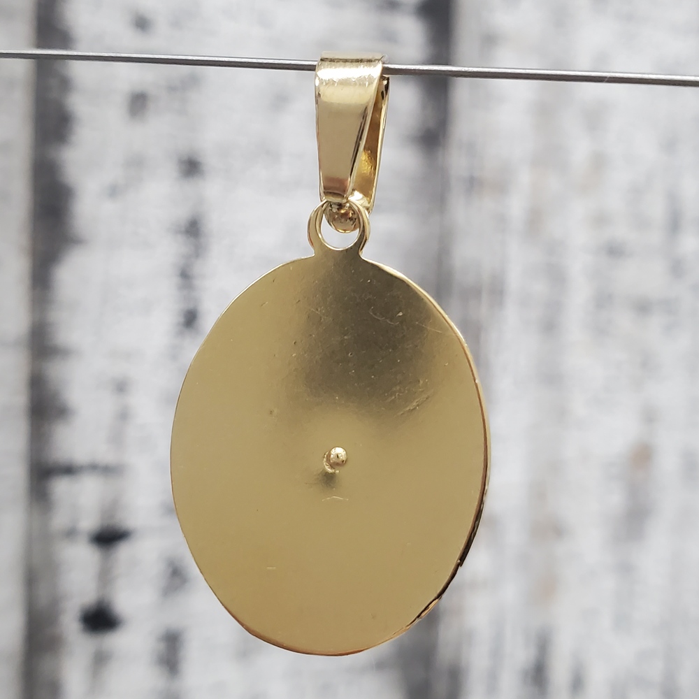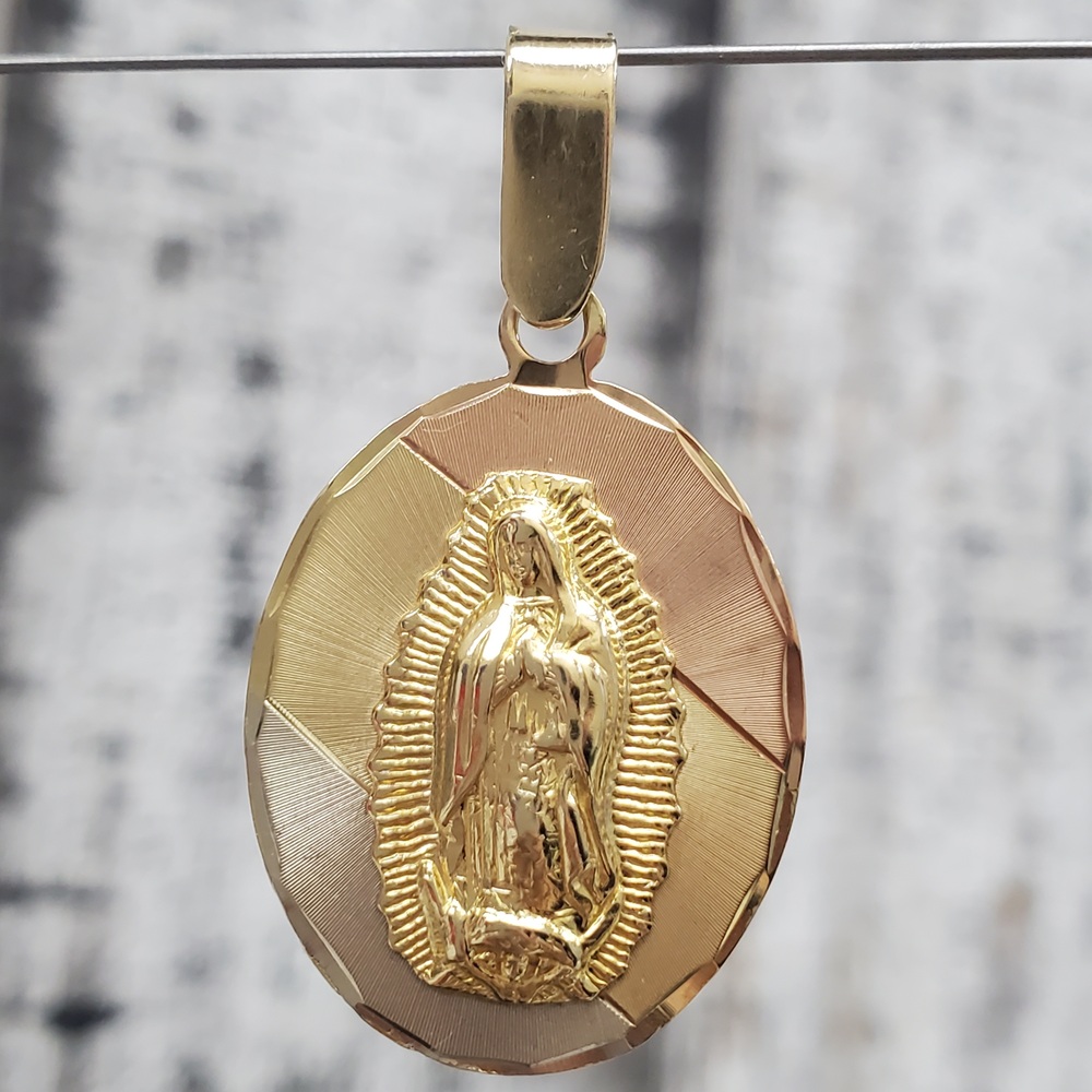 We have this stunning 14K Tricolor Virgin Mary / Guadalupe Religious Pendant for sale!