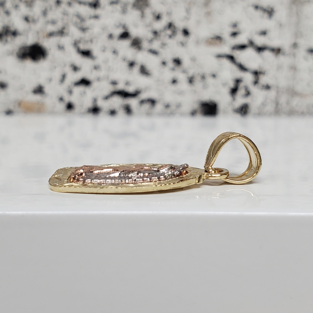 We have this stunning 14K TriColor Virgin Mary Religious Pendant For sale!