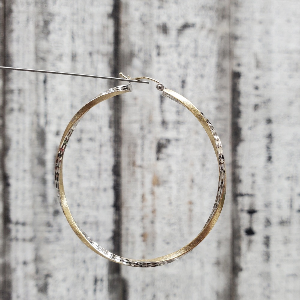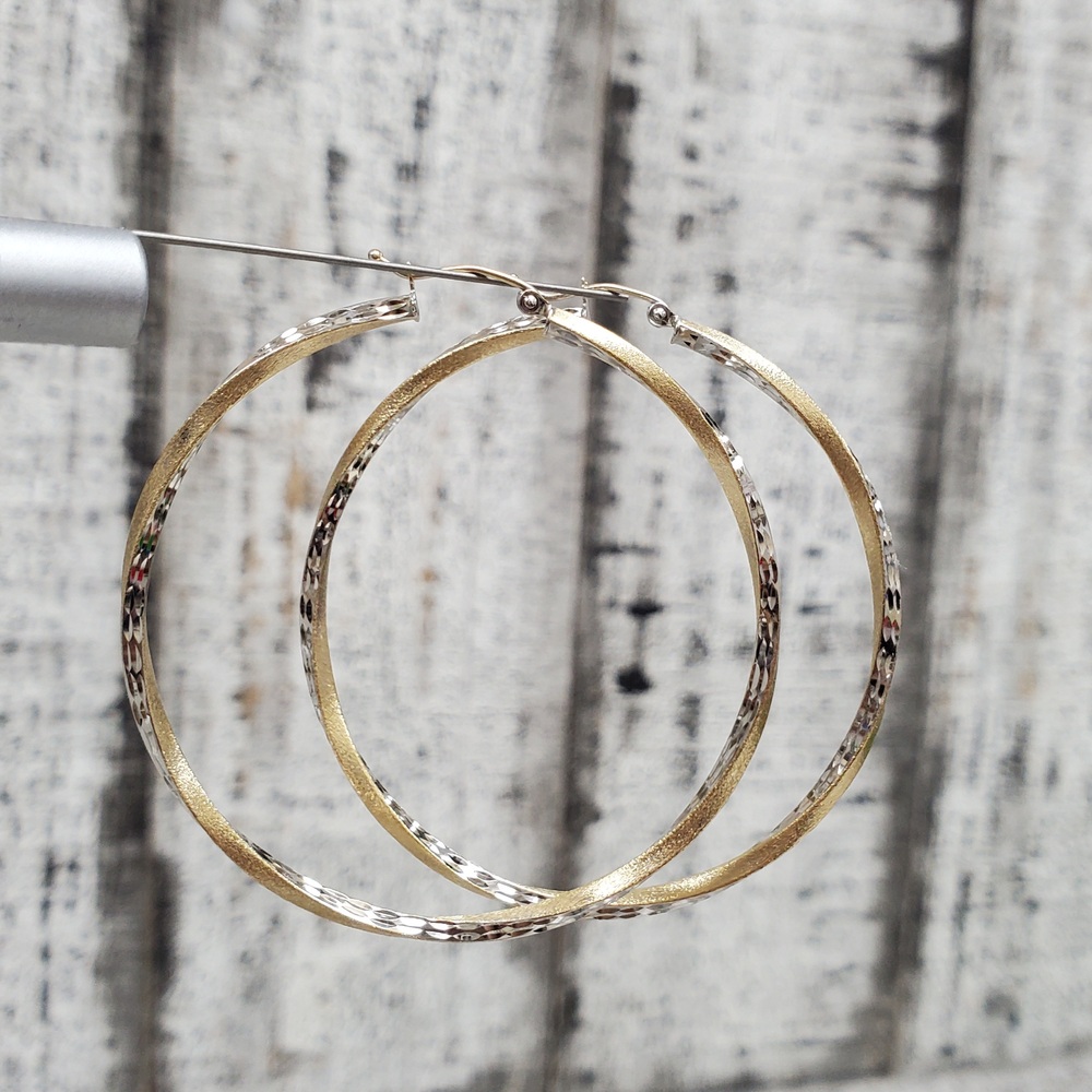 We have this stunning 14K Twisty Diamond Cut Hoop Earrings for sale!
