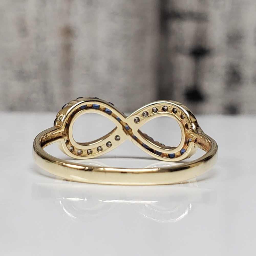We have this stunning 14K White + Blue CZ Infinity Symbol Ring for sale!