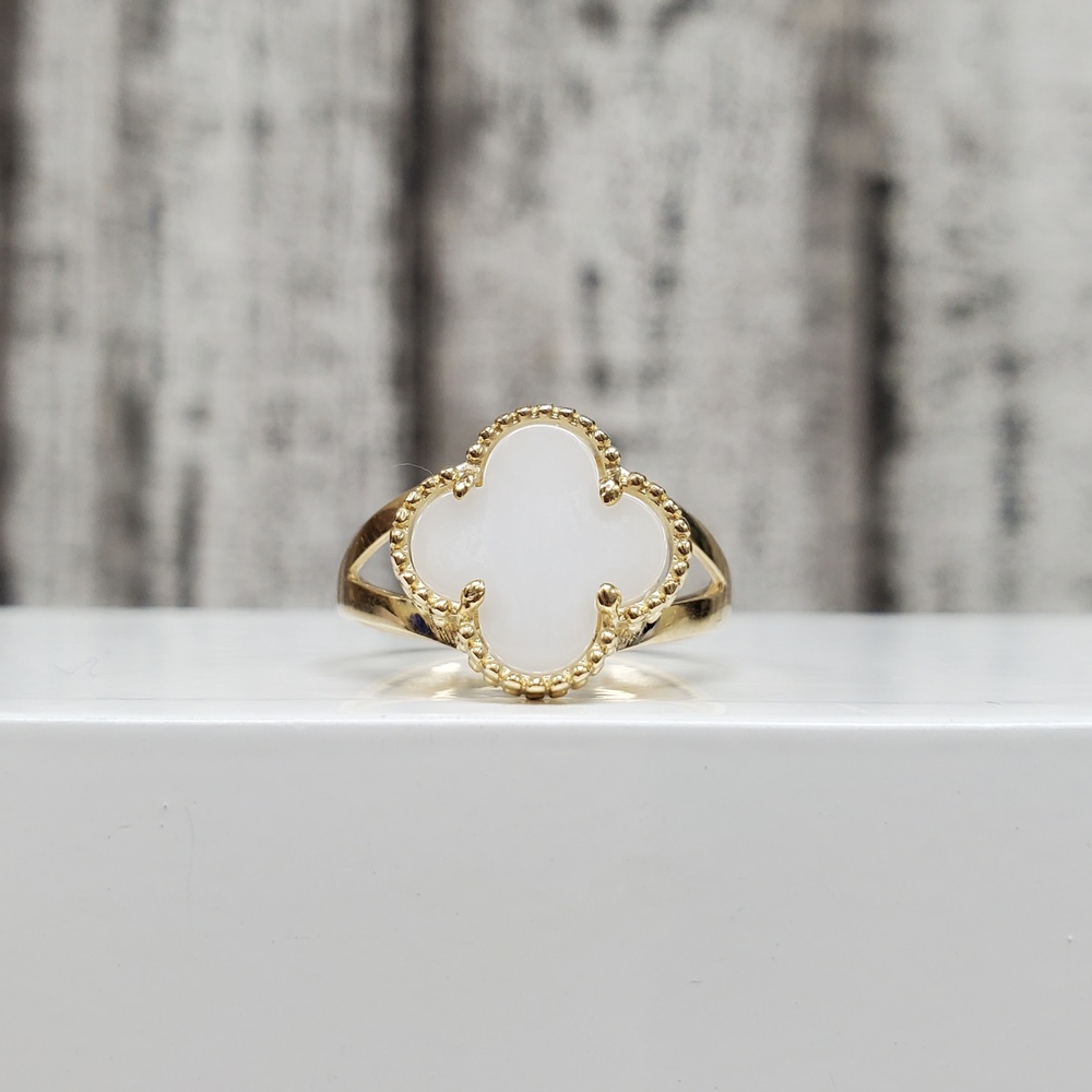 We have this stunning 14K White Stone Clover Shaped Ring for sale!