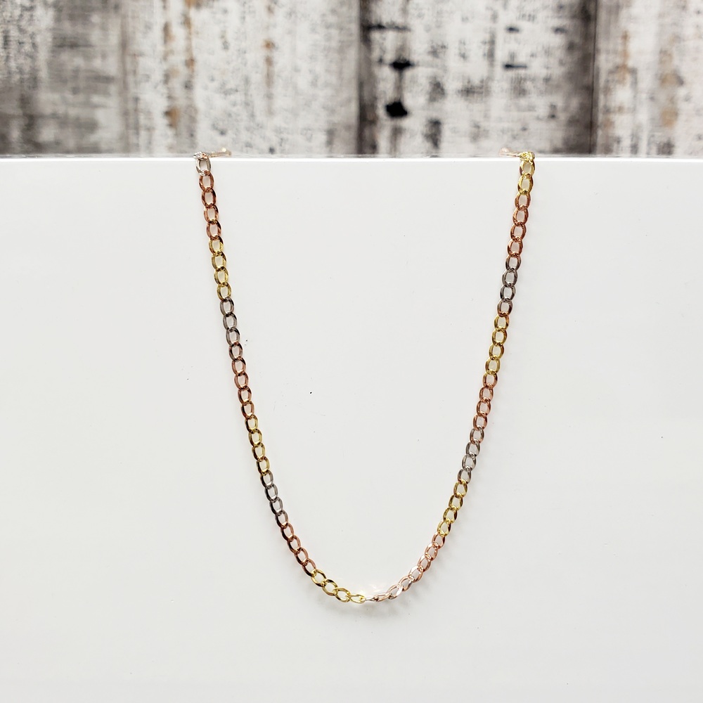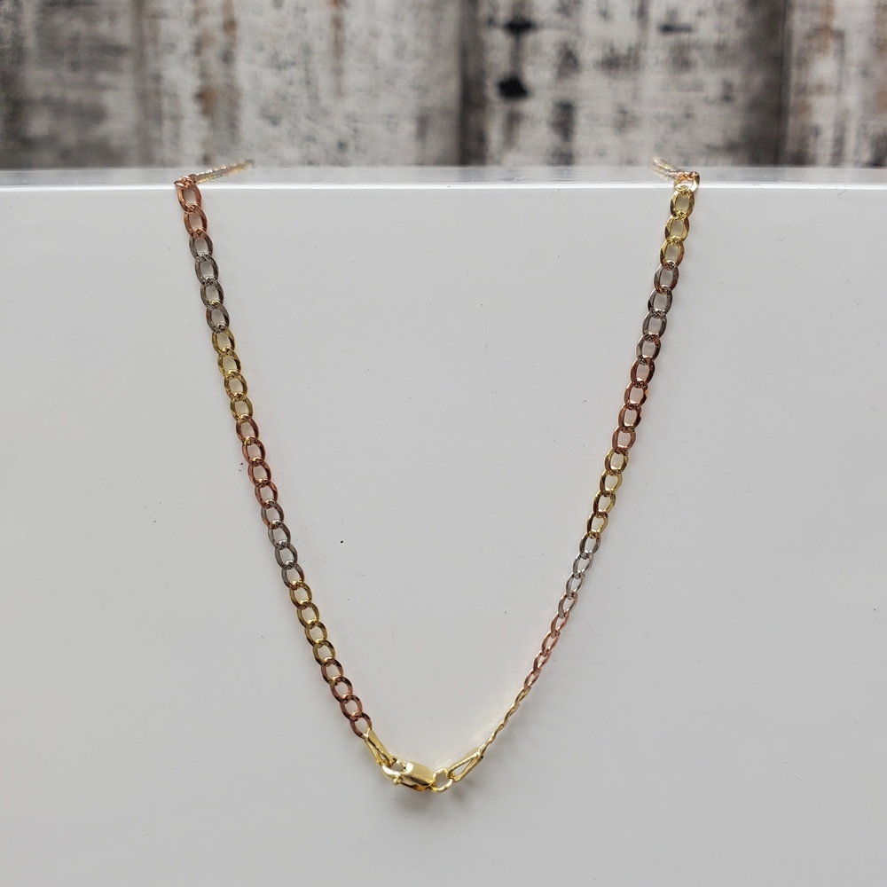 We have this stunning 14K TriColor Diamond Cut Curb Link Necklace for sale!