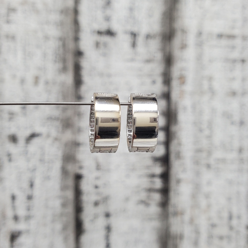 We have this stunning 18K Birks Splash Diamond Huggie Hoop Earrings for sale!