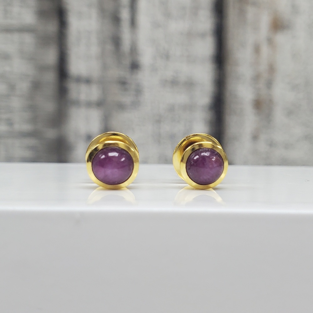 We have this stunning 18K Cabachon Ruby Stud Earrings w/ Friction Backs For sale!