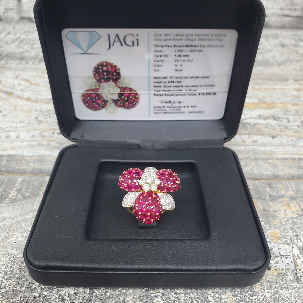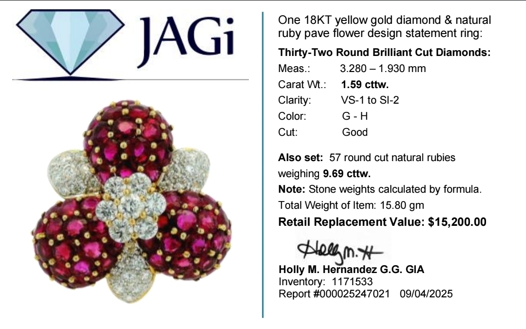 Carat Total Weight: Est. 9.69ctw Nat. Rubies + Est. 1.59ctw Round Brilliant Diamonds