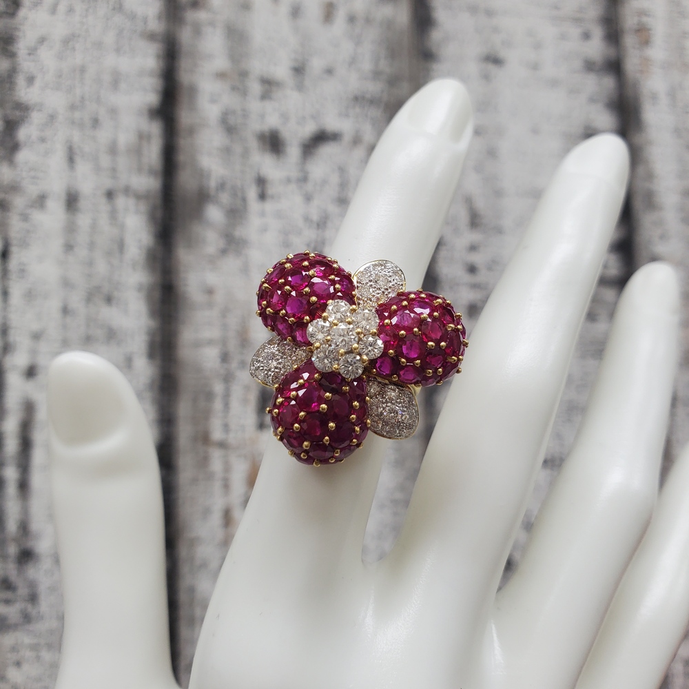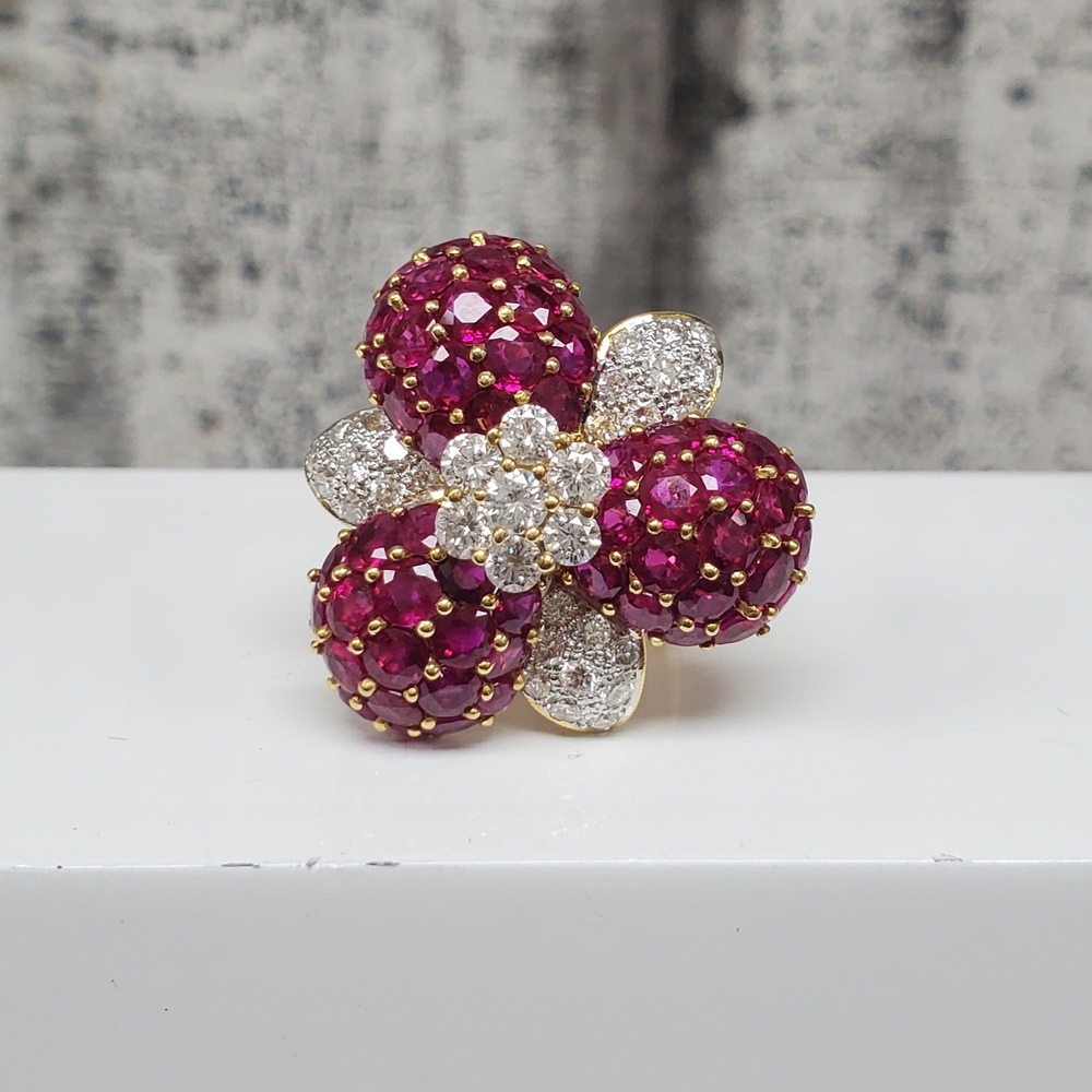 We have this stunning 18K Diamond Flower Design Ring for sale!