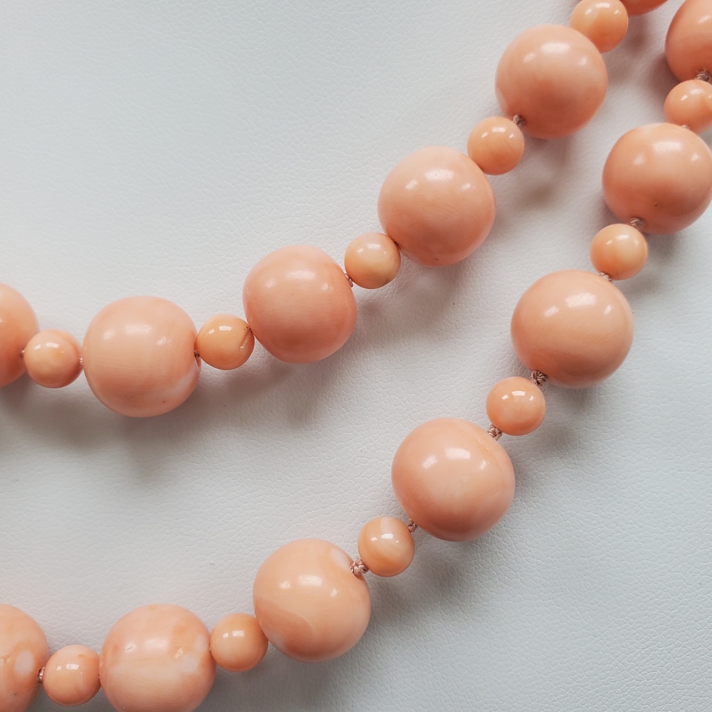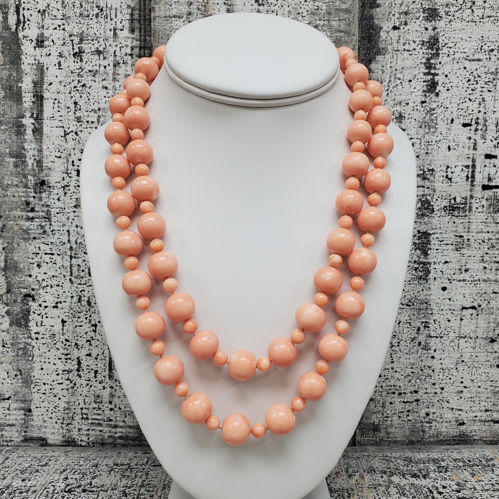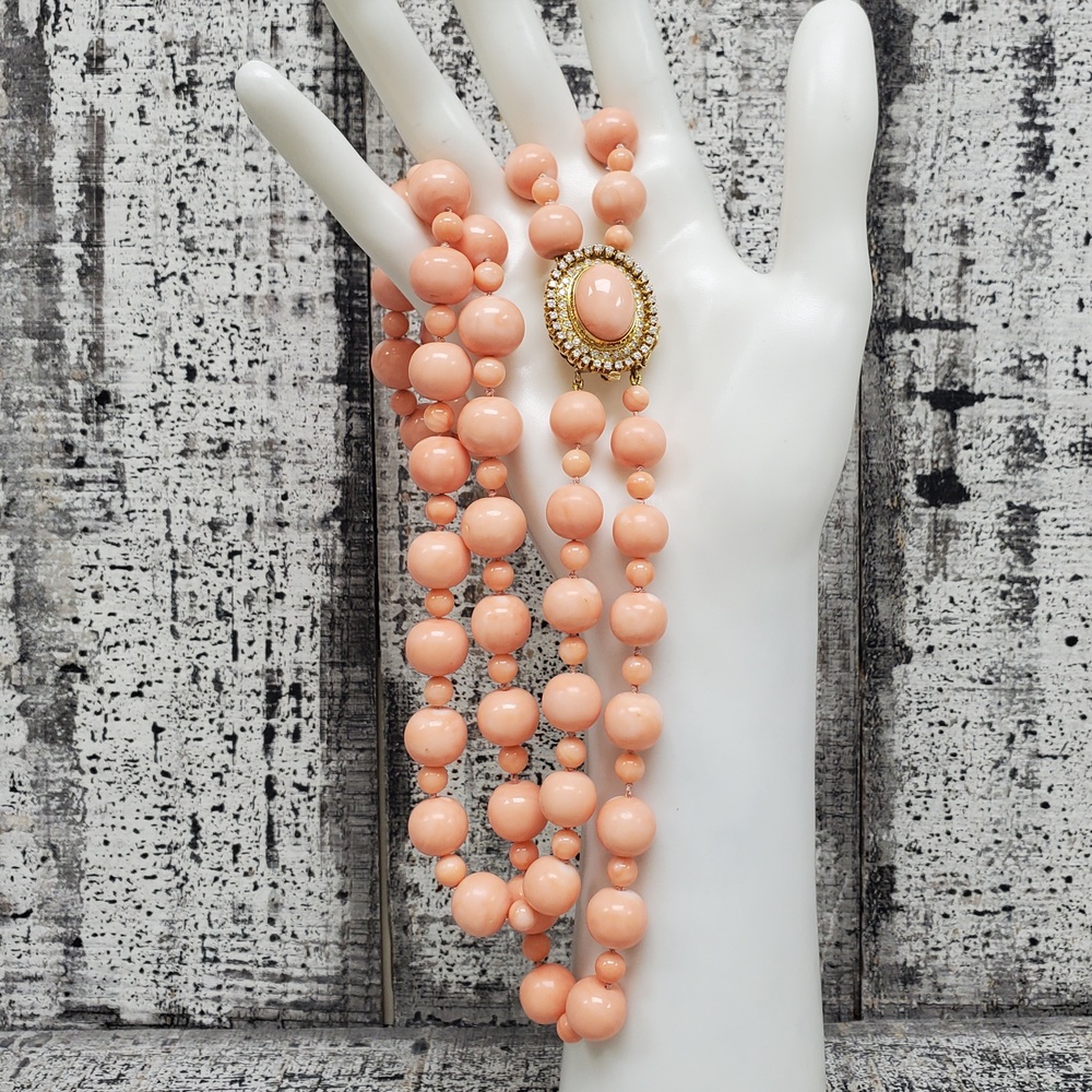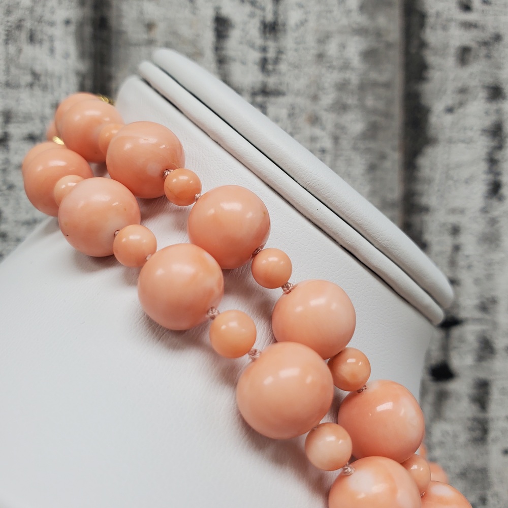 We have this stunning 18K Double Strand Coral + Diamond Necklace For sale!