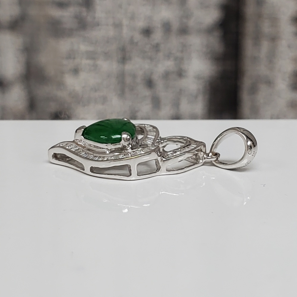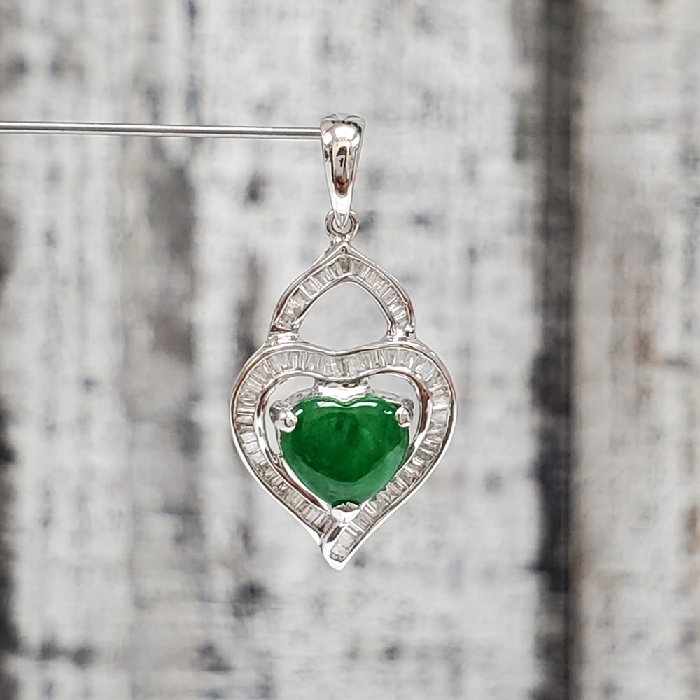 We have this stunning 18K Jade Heart Diamond Pendant For sale!