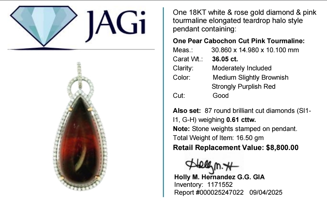 Notes: JAGI LAB #:000025247022 - RETAIL REPLACEMENT VALUE: $8800 Pendant