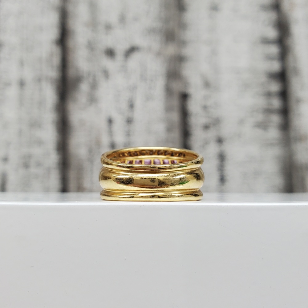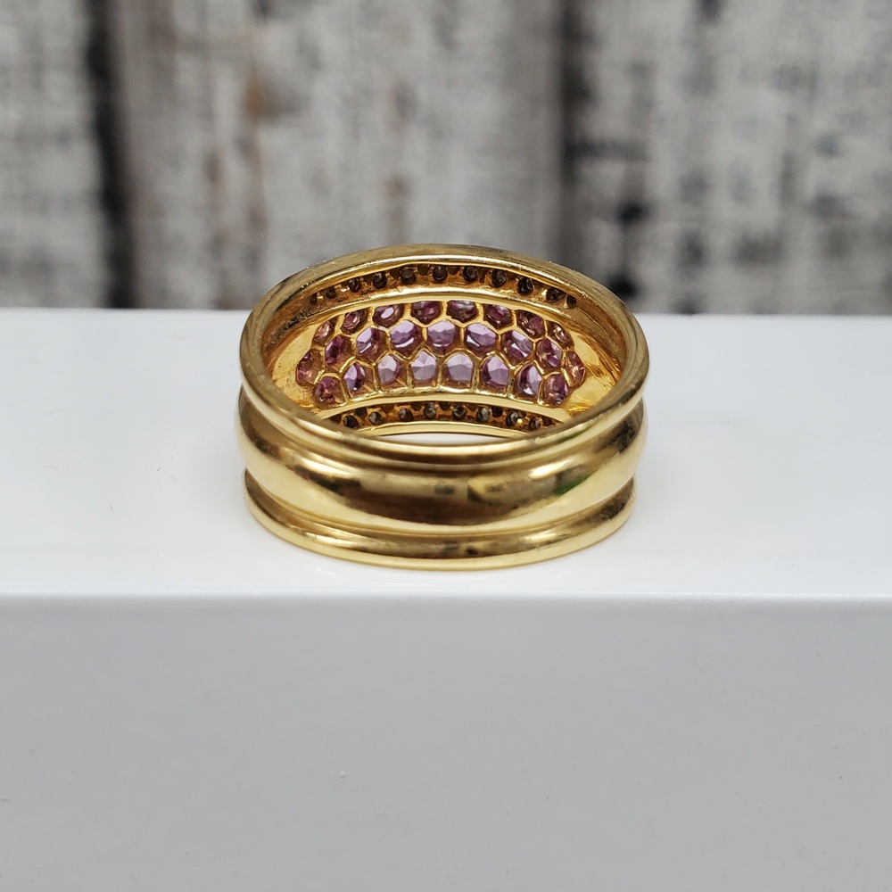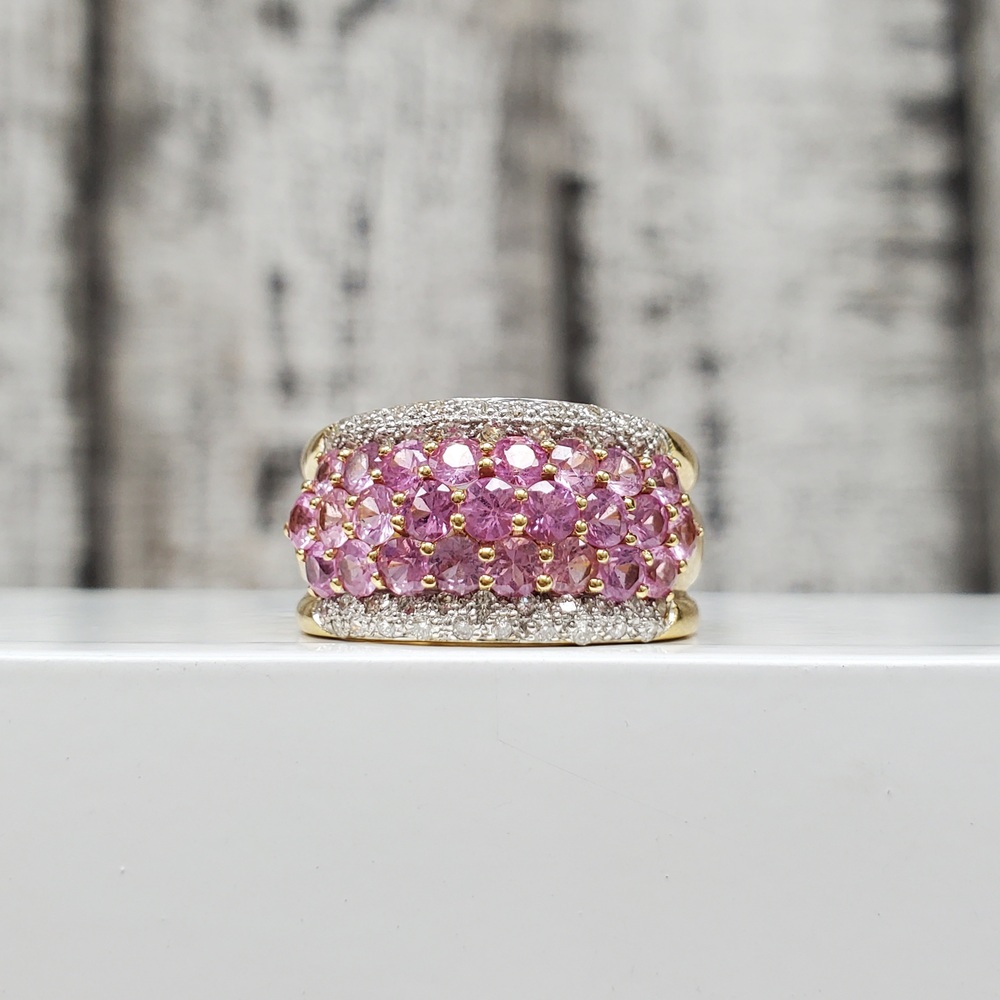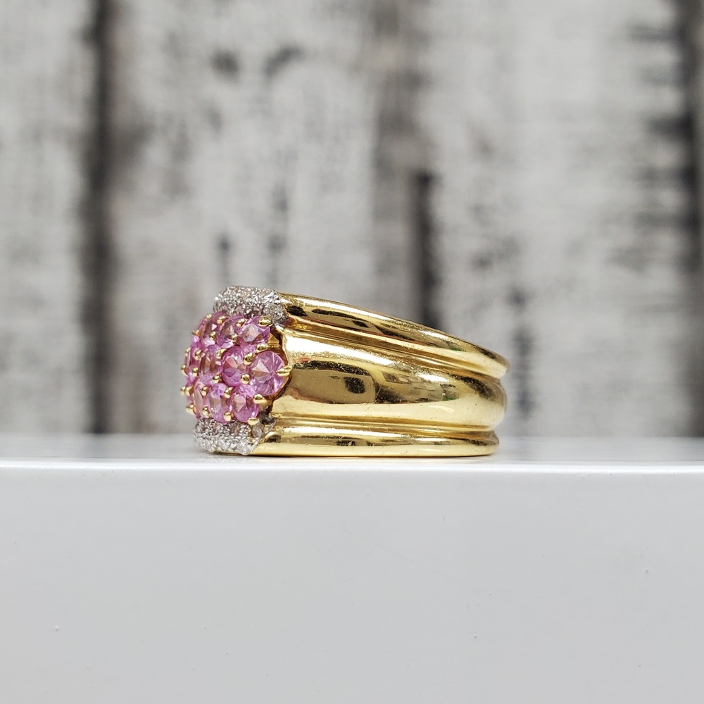 We have this stunning 18K Pink Sapphires + Diamond Ring for sale!