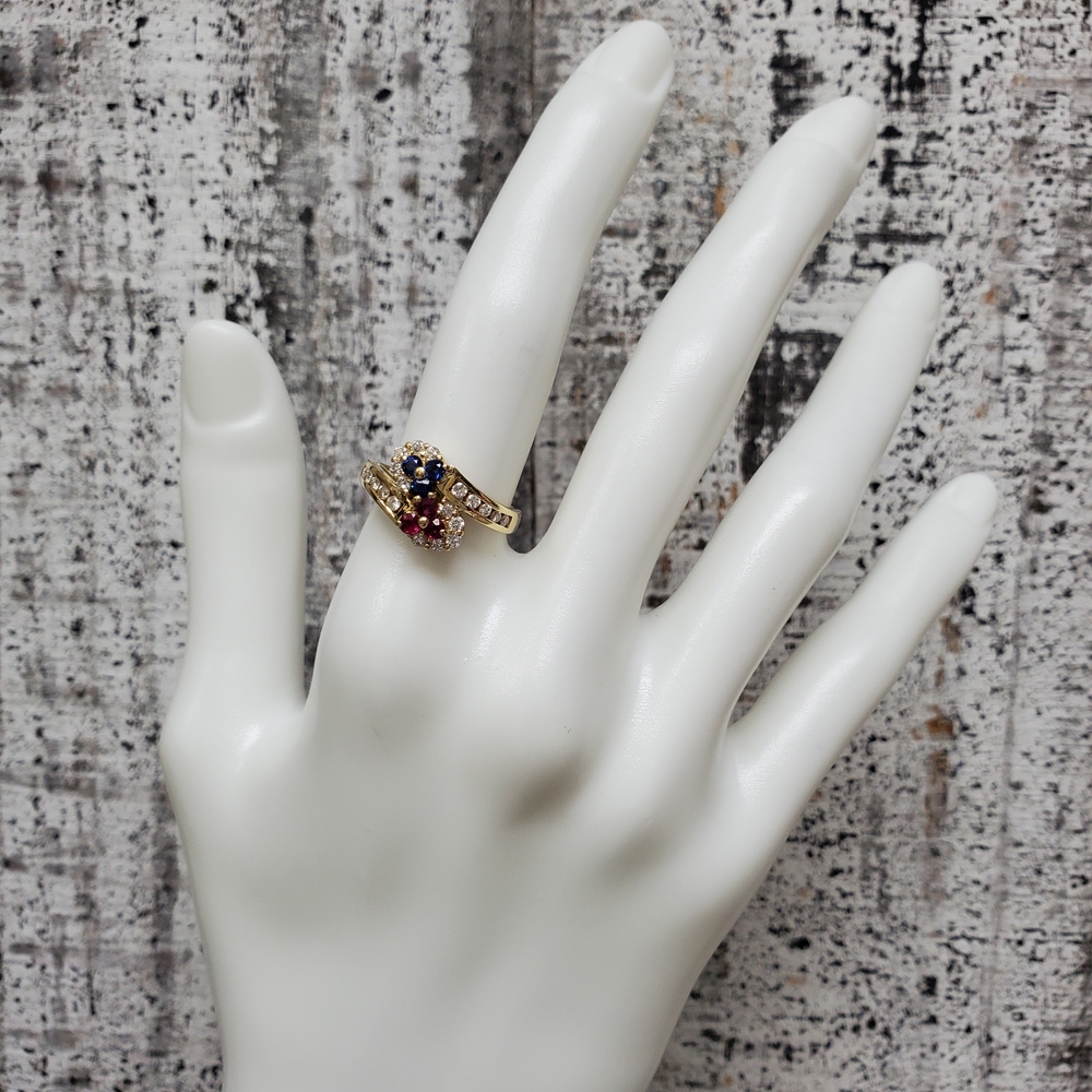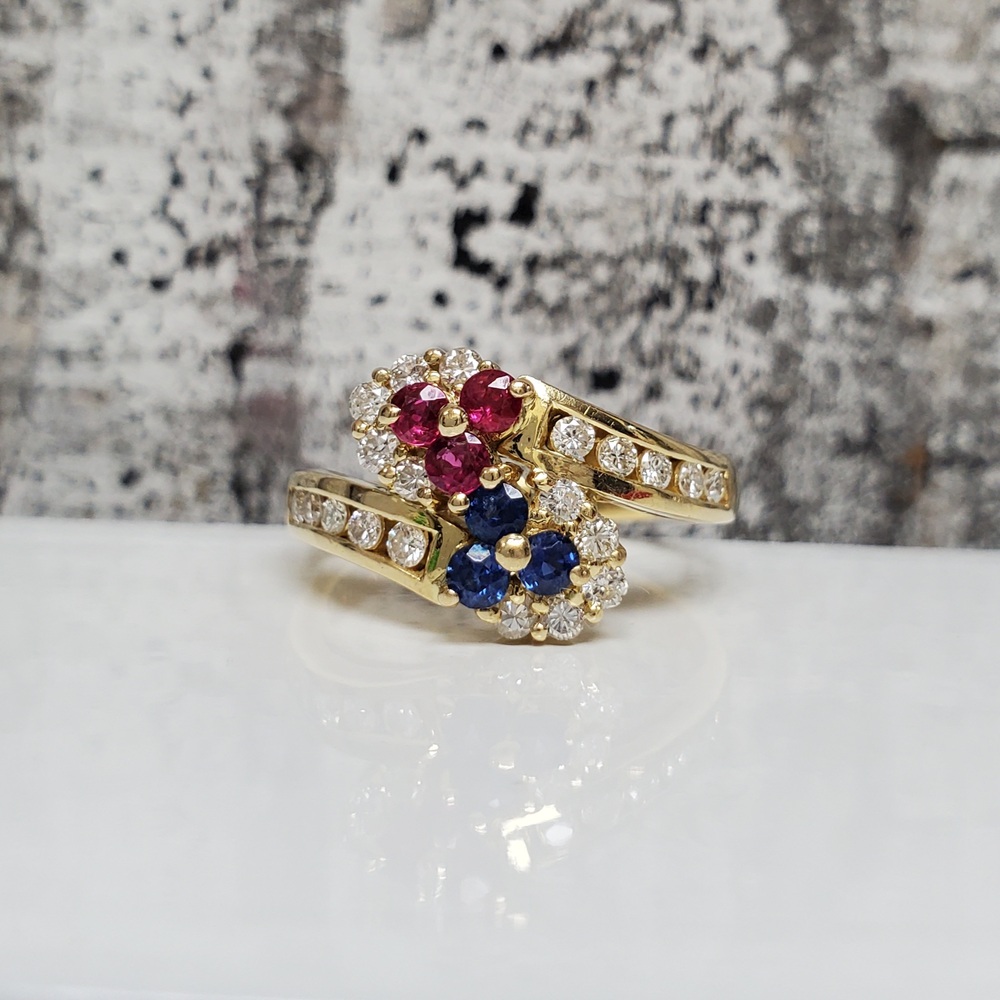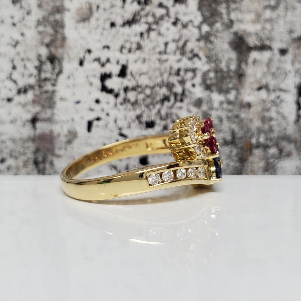 Carat Total Weight: Est. .42ctw Round Brilliant Diamonds + Est. .49ctw Rubies and Sapphires