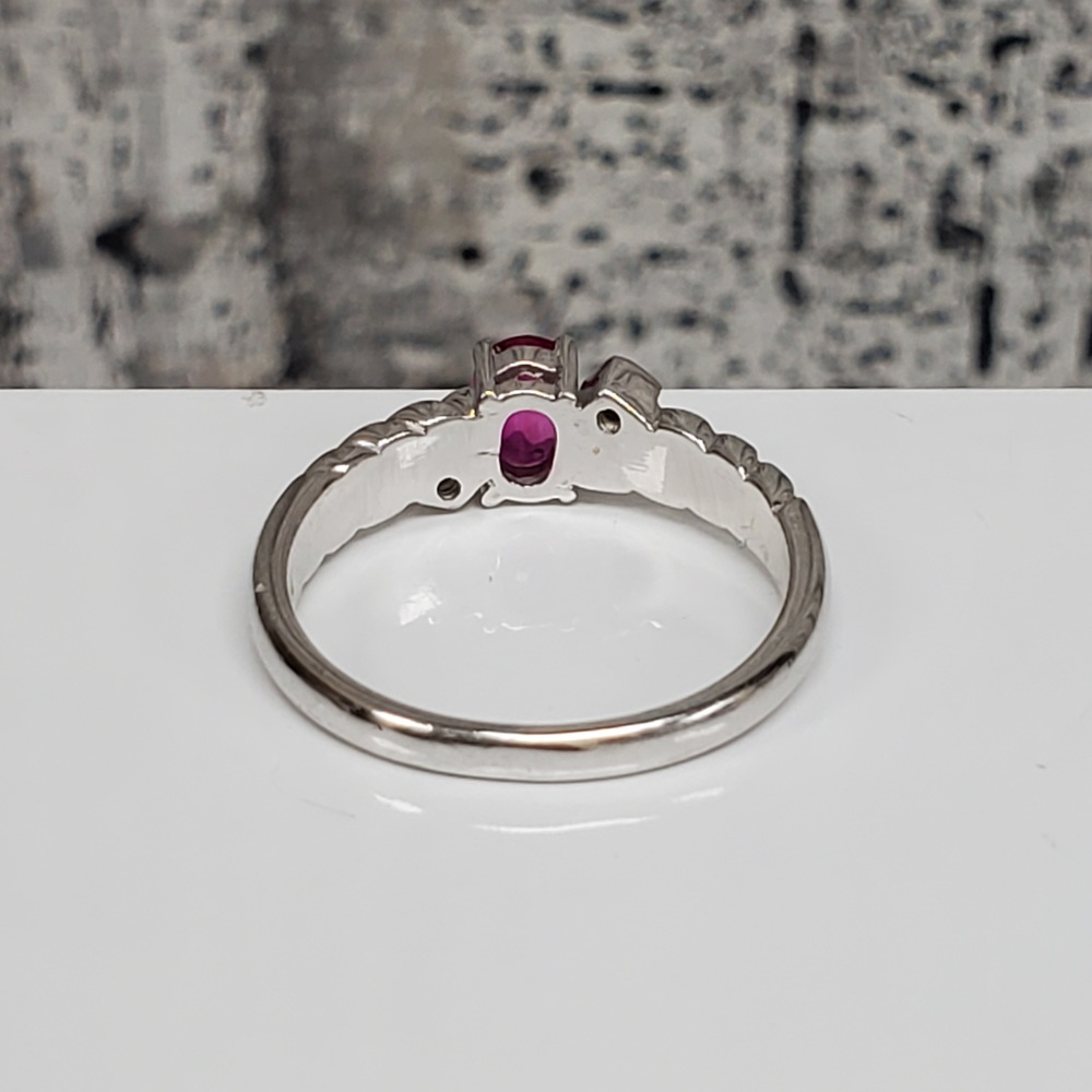 Carat Total Weight: Oval Ruby (ap6x4.25mm) + est. .02ctw Round Brilliant Diamonds