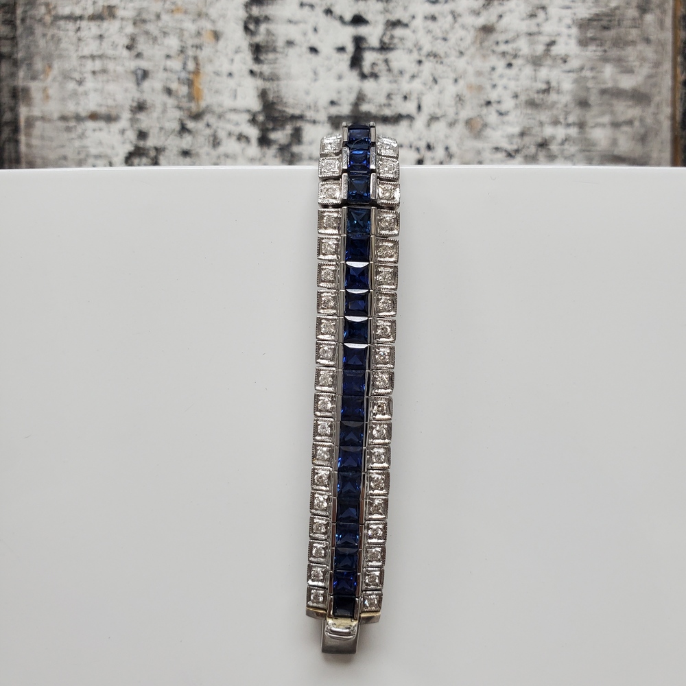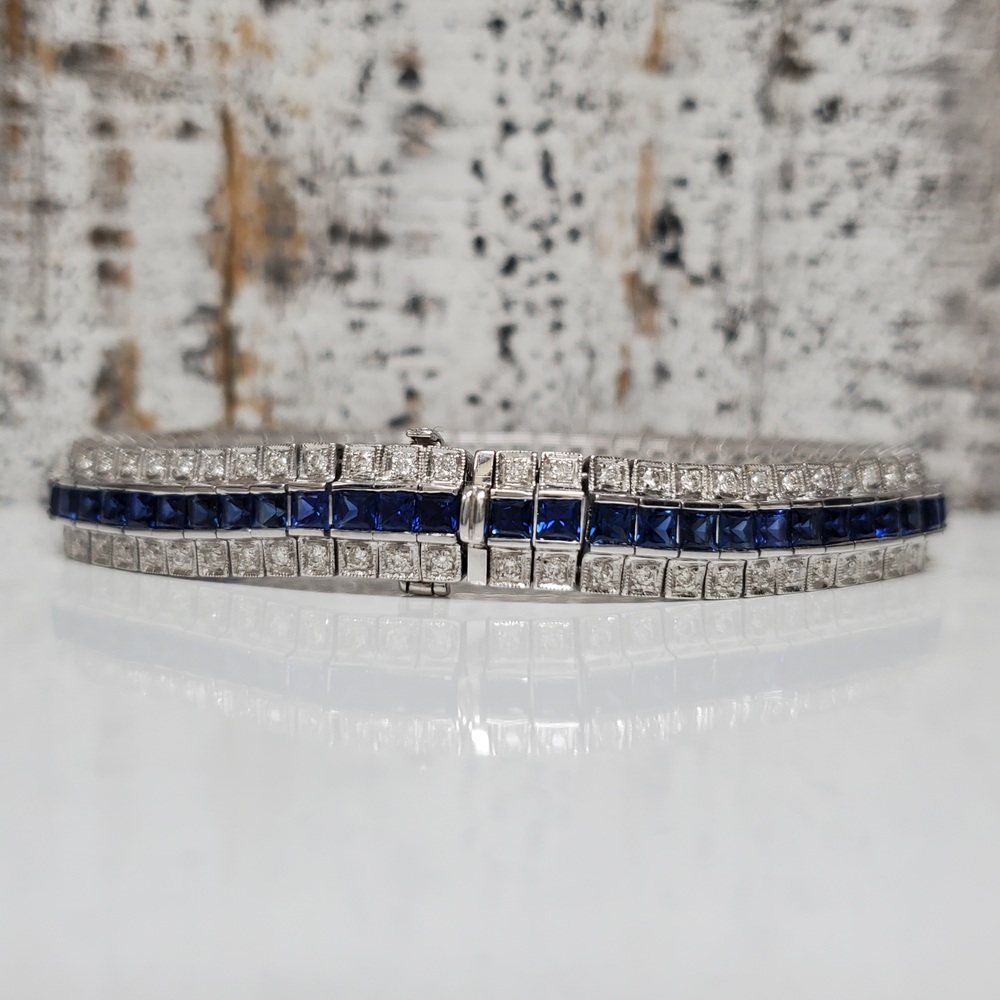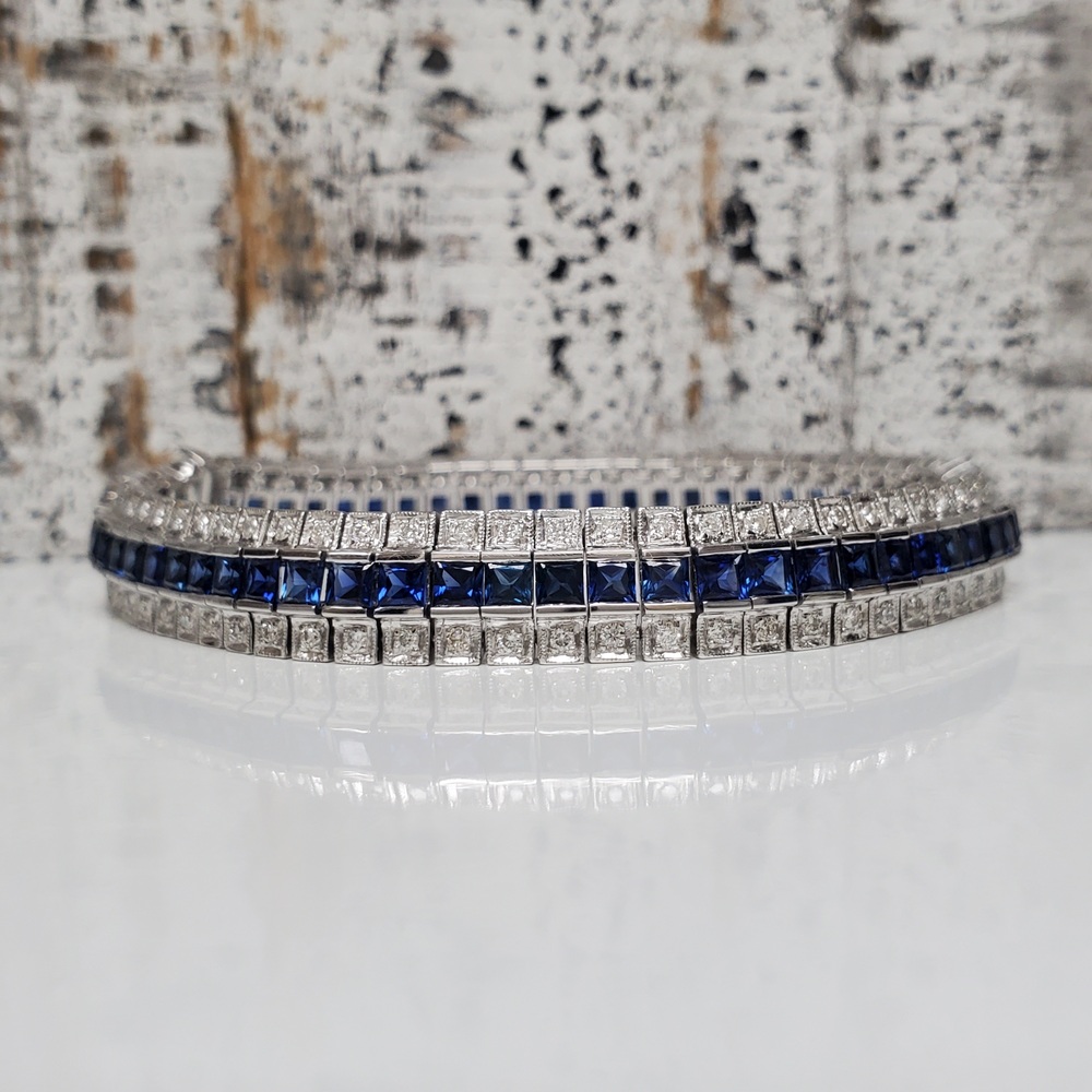 We have this stunning 18K Sapphire + Diamond Bracelet For sale!