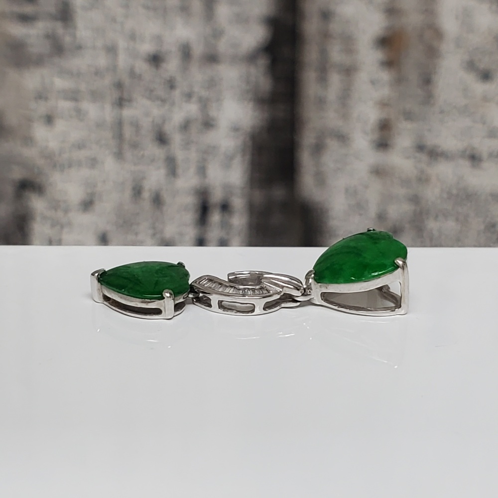 We have this stunning 18K Two Jade Hearts Diamond Pendant For sale!