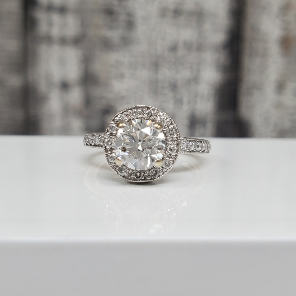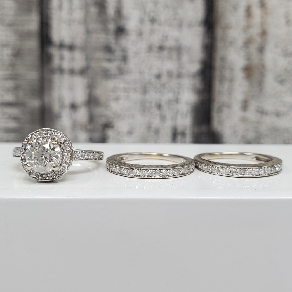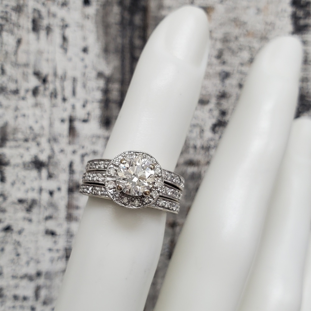 Carat Total Weight: 1.00ct G VS2 (GIA) 5111432381 + .75ctw RB Dias + est. .65ctw RB Dias on 2 Bands