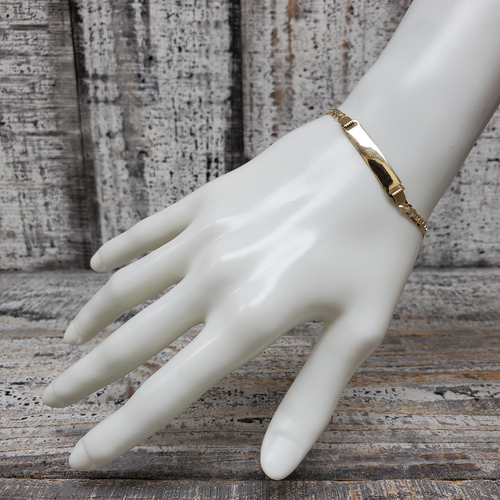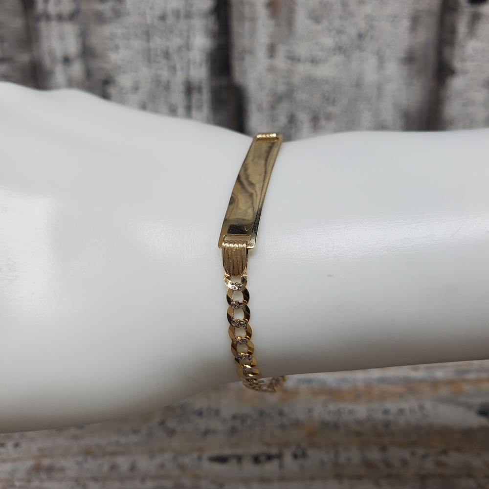 We have this stunning 14K Diamond Cut Curb Link ID Bracelet for sale!